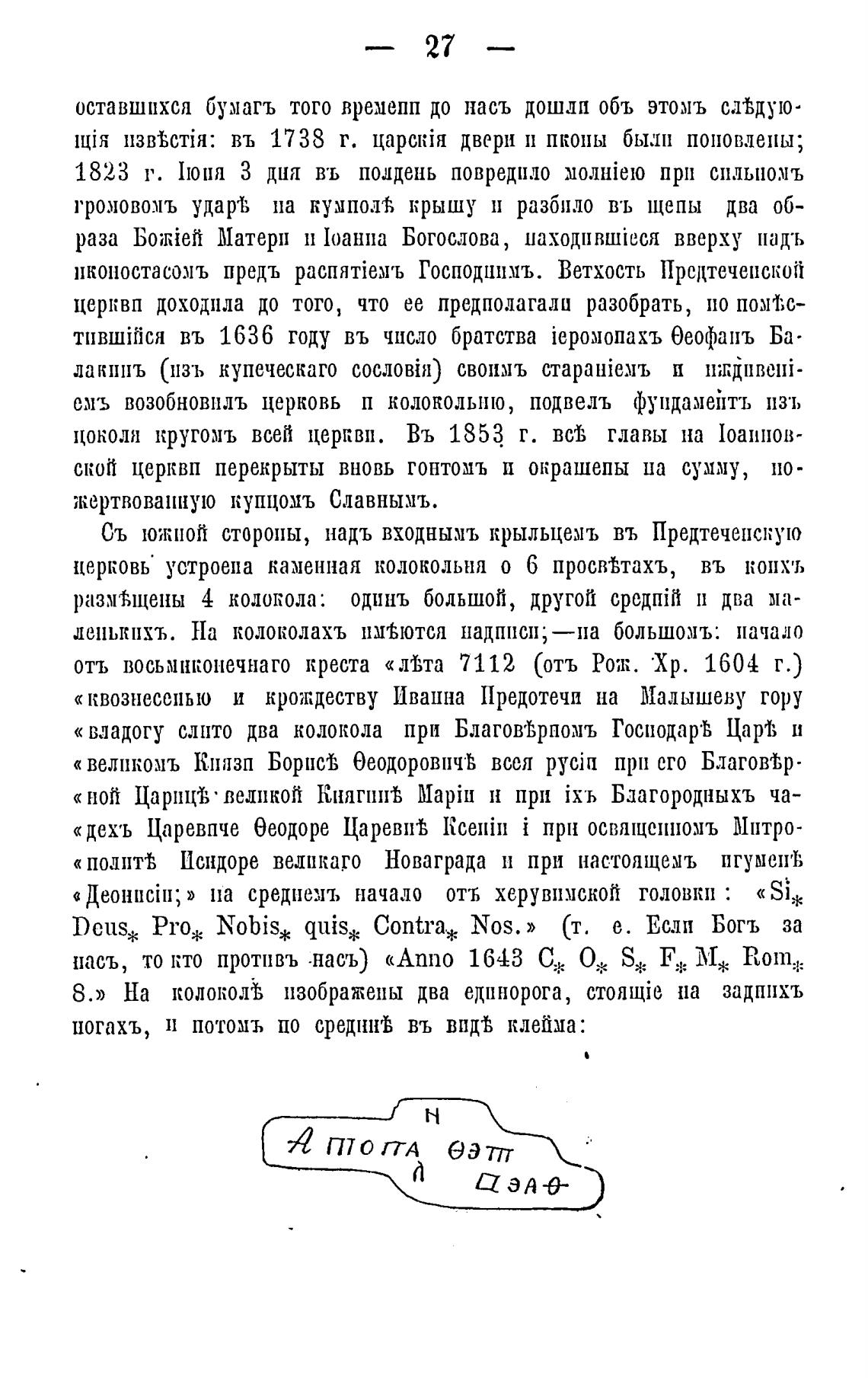 омъ возобновплъ церковь п колокольню, подвелъ фундамећтъ пз•ь