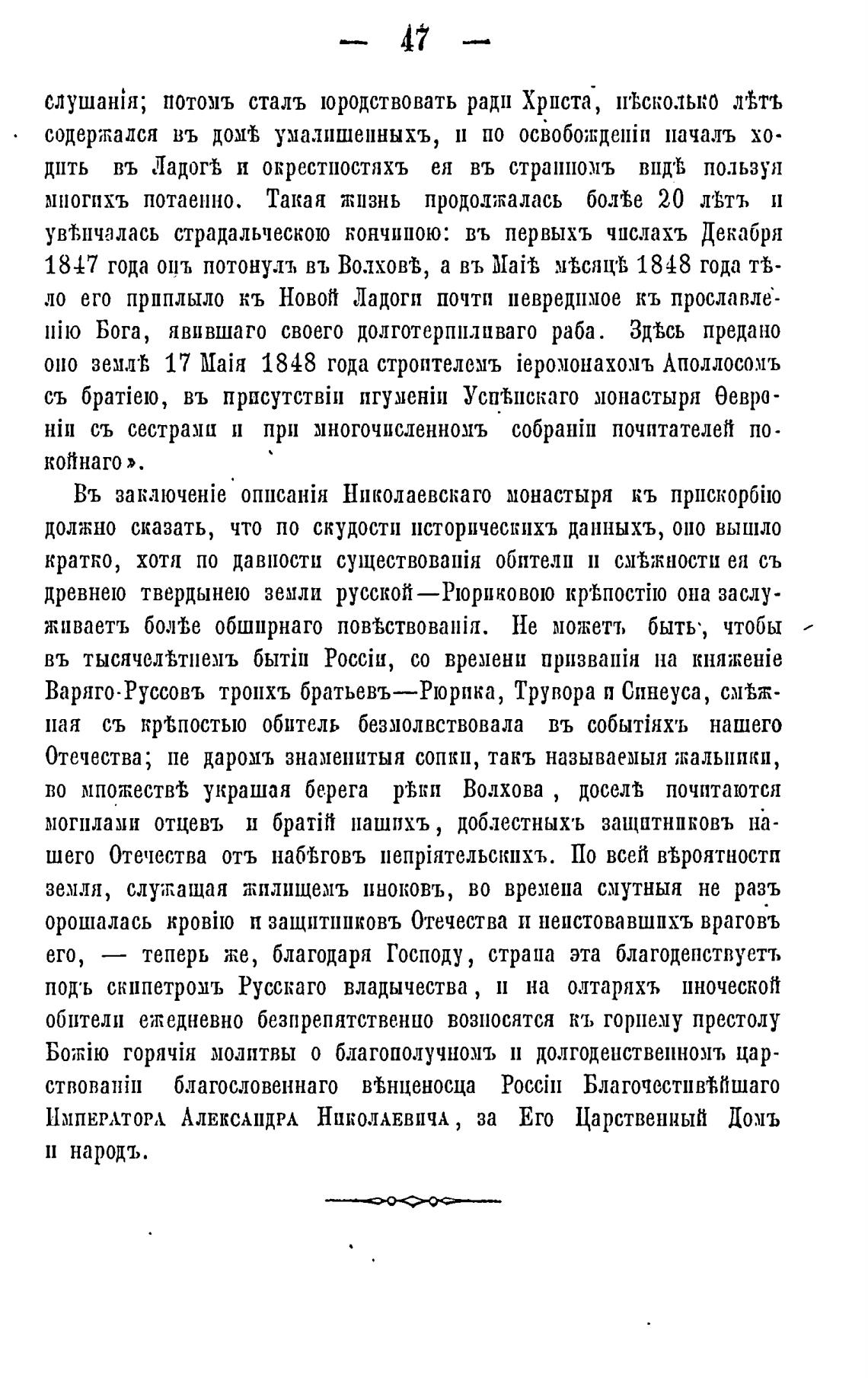 1847 года опь потонулъ въ Вол.хов•В, а въ мыяц•В 1848 года й-