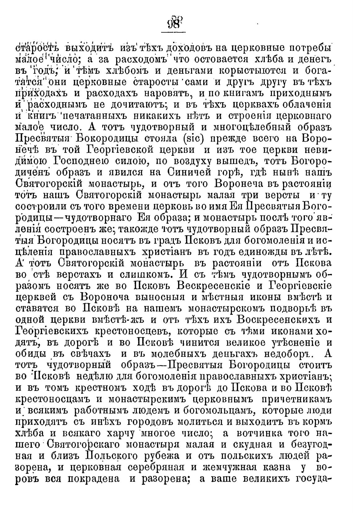 Пресћтыя• Бокородицы стояла (sic) прежде всего на Воро-