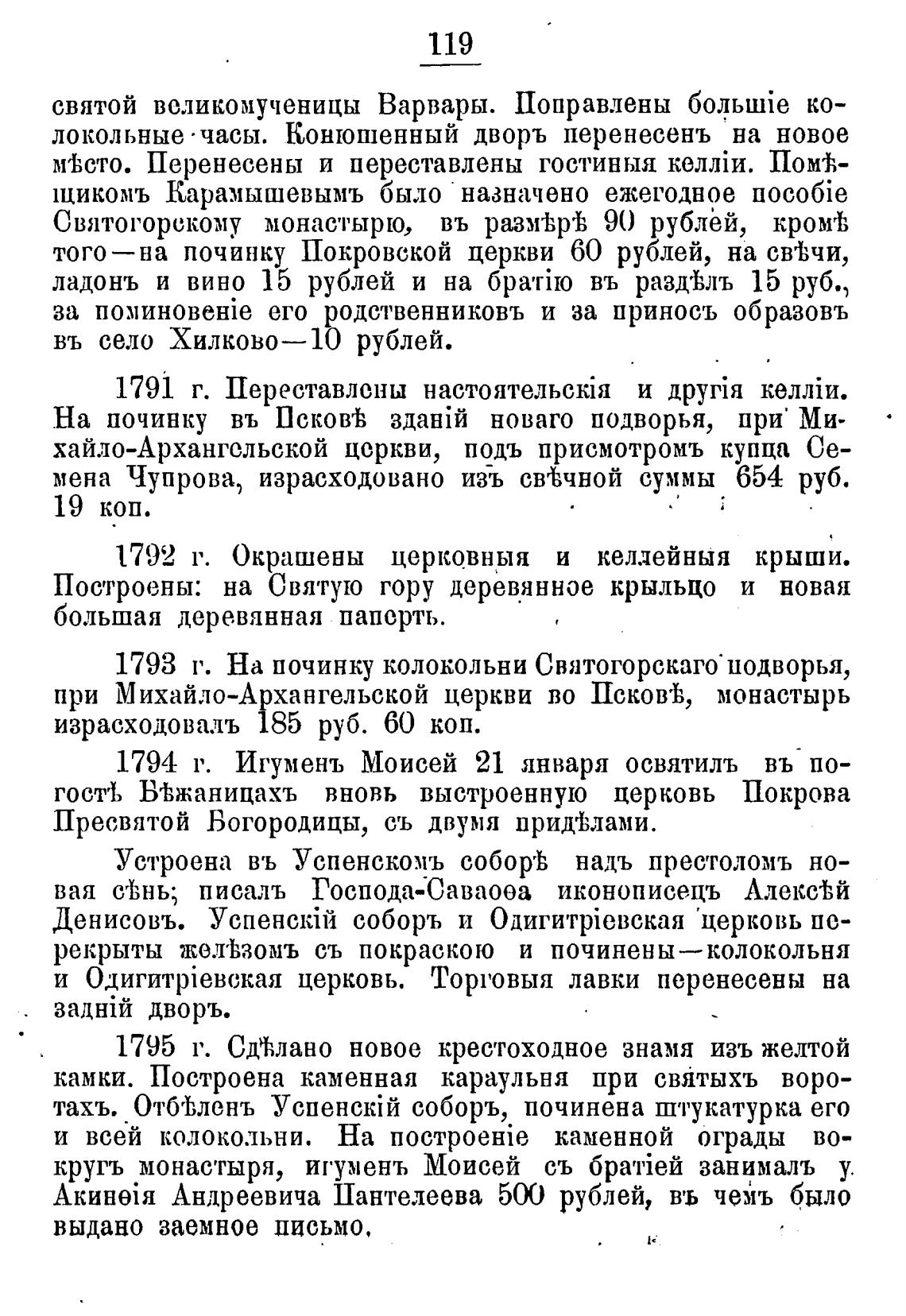 1793 г. На починку колокольни Святогорскаго•иодворья,
