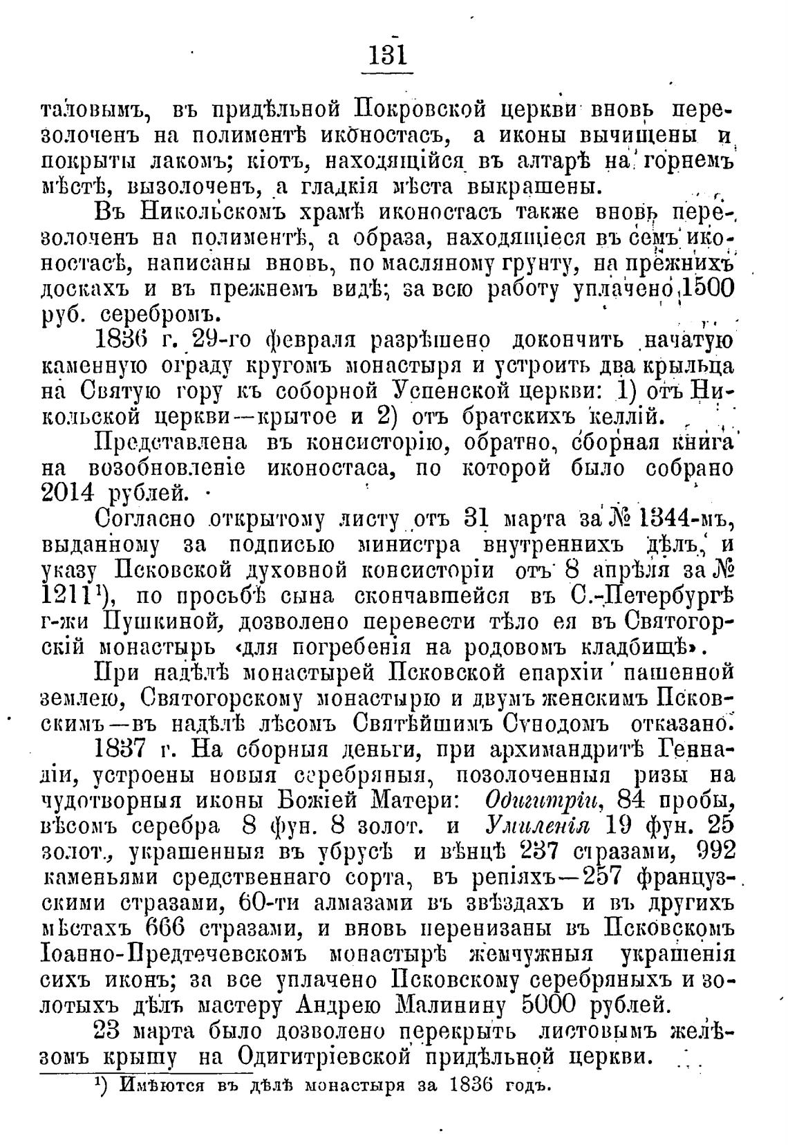 1) Им•Ьются въ деь.тйз монастыря за 1836 годъ.