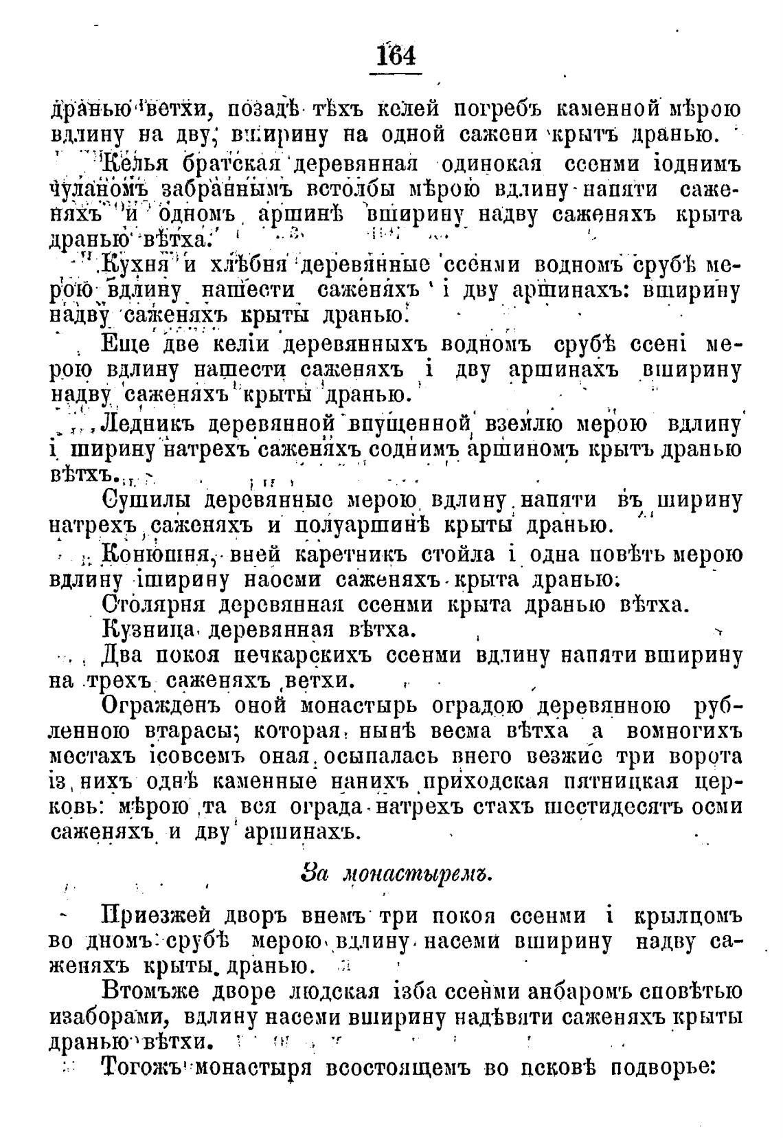 пото бдлину напГес,ти сажёнйхъ i дву аршинахъ: вшири-ну