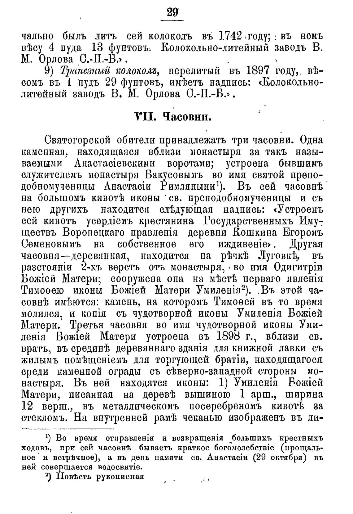 VII. Часовни.