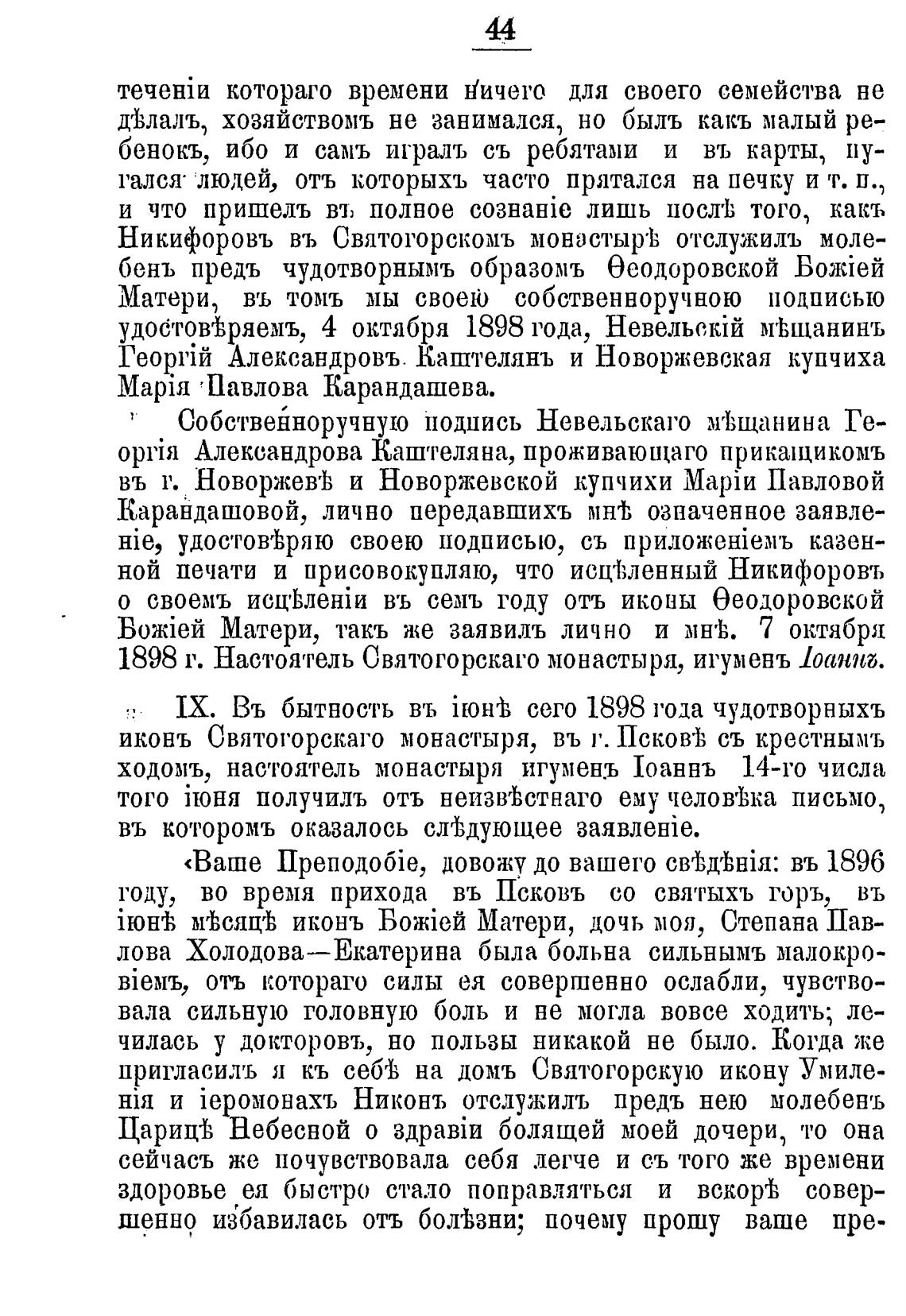 IX. Въ бытность въ itowh сего 1898 года чудотворныхъ