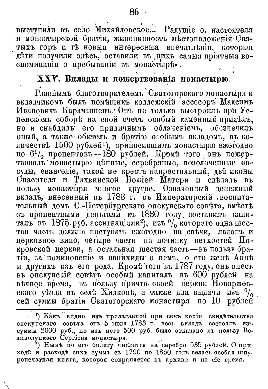 сей суммы Святогорскаго монастыря по 10 рублей