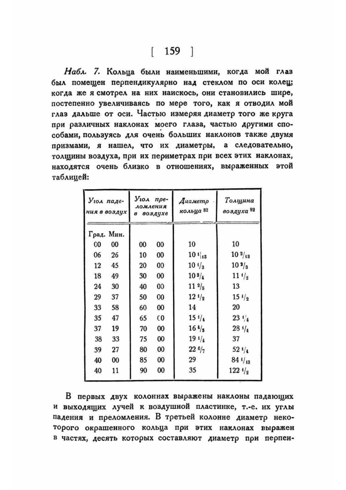 падения и преломления. В третьей колонне диаметр неко-