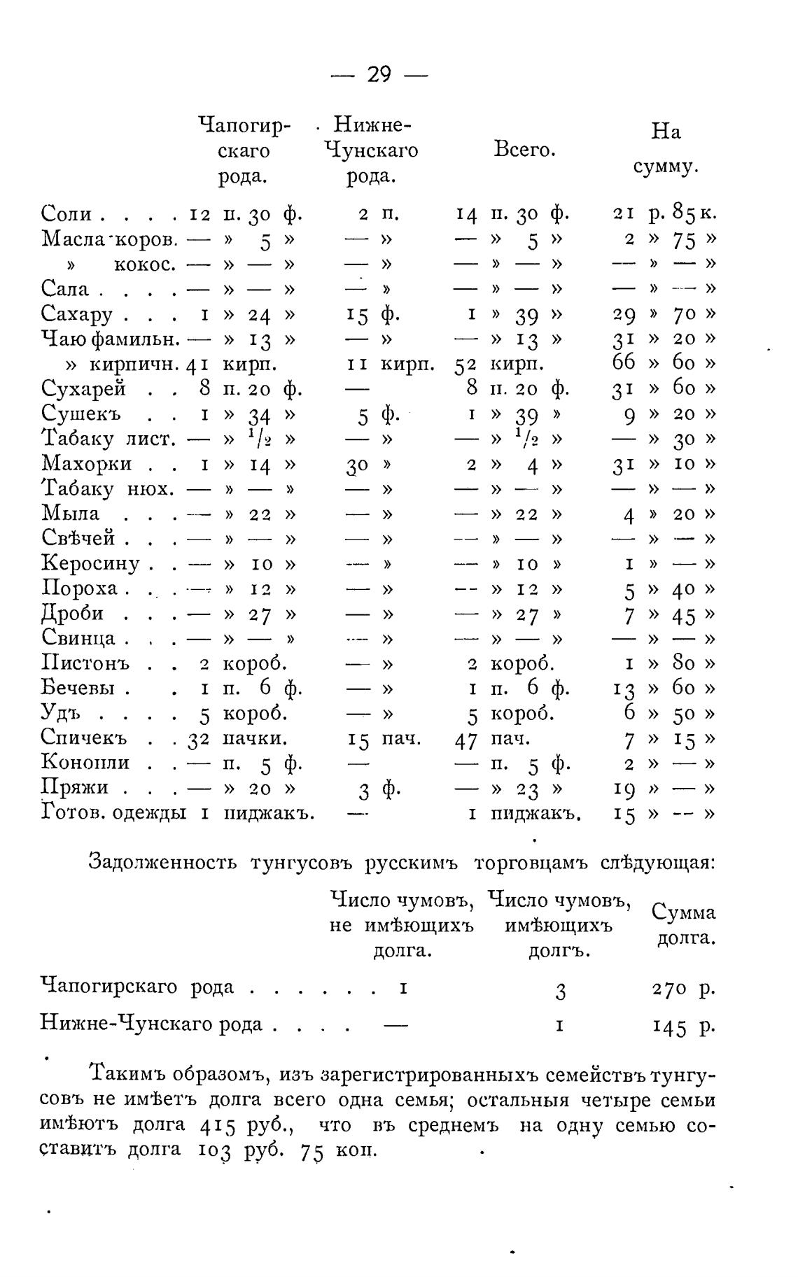 Задолженность тунгусовъ русскимъ торговцамъ сл±дующая: