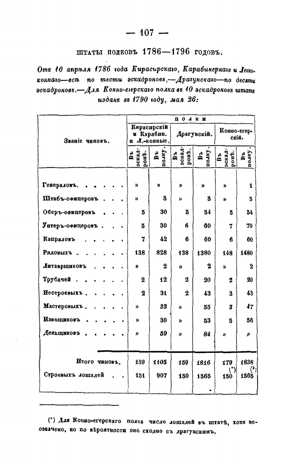 ШТАТЫ ПОЛКОВЪ 1786—1796 ГОДОВЪ.