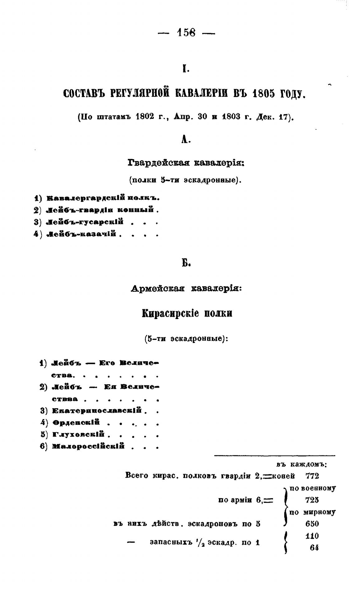 СОСПВЪ РЕГУЛЯРНОЙ КАВАЛЕРШ ВЪ 1805 году.