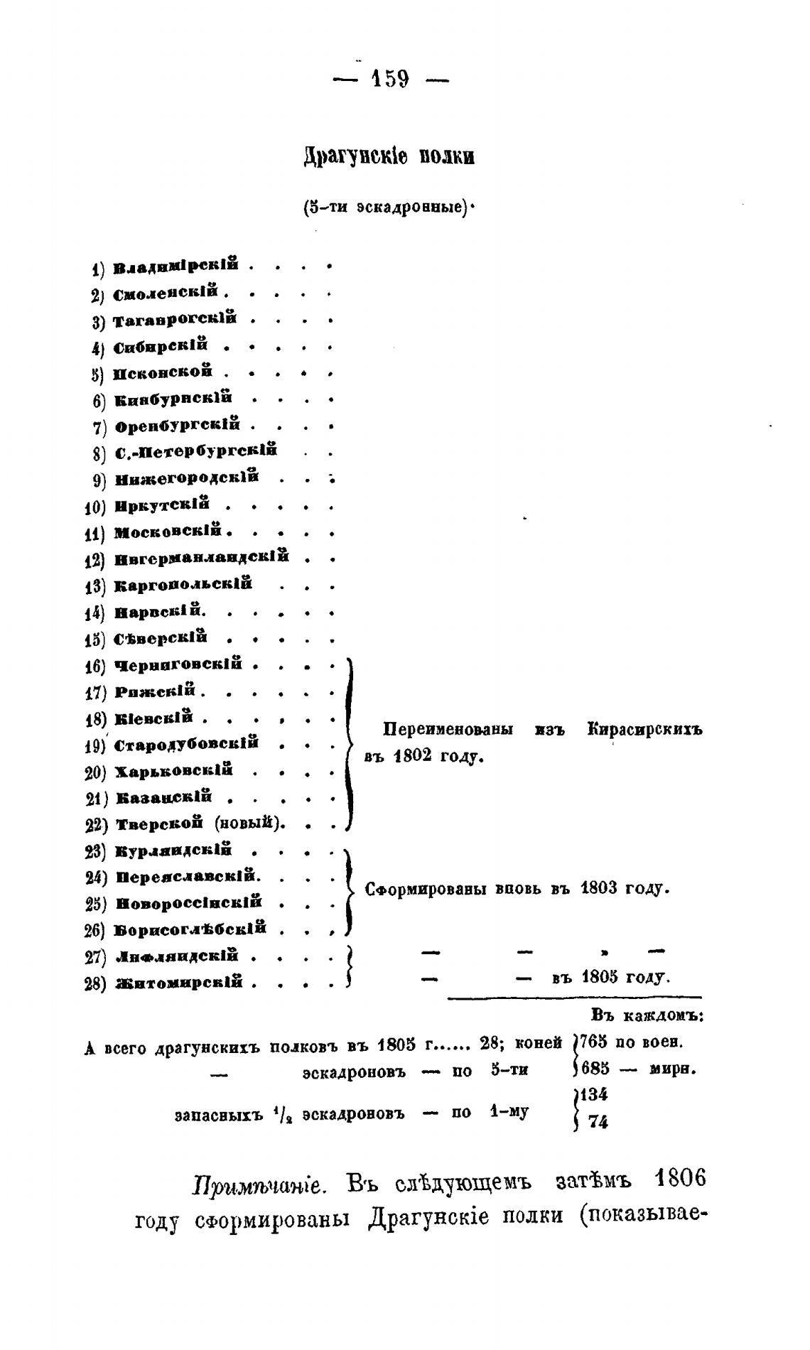 А всего драгунскихъ полковљ въ 1805