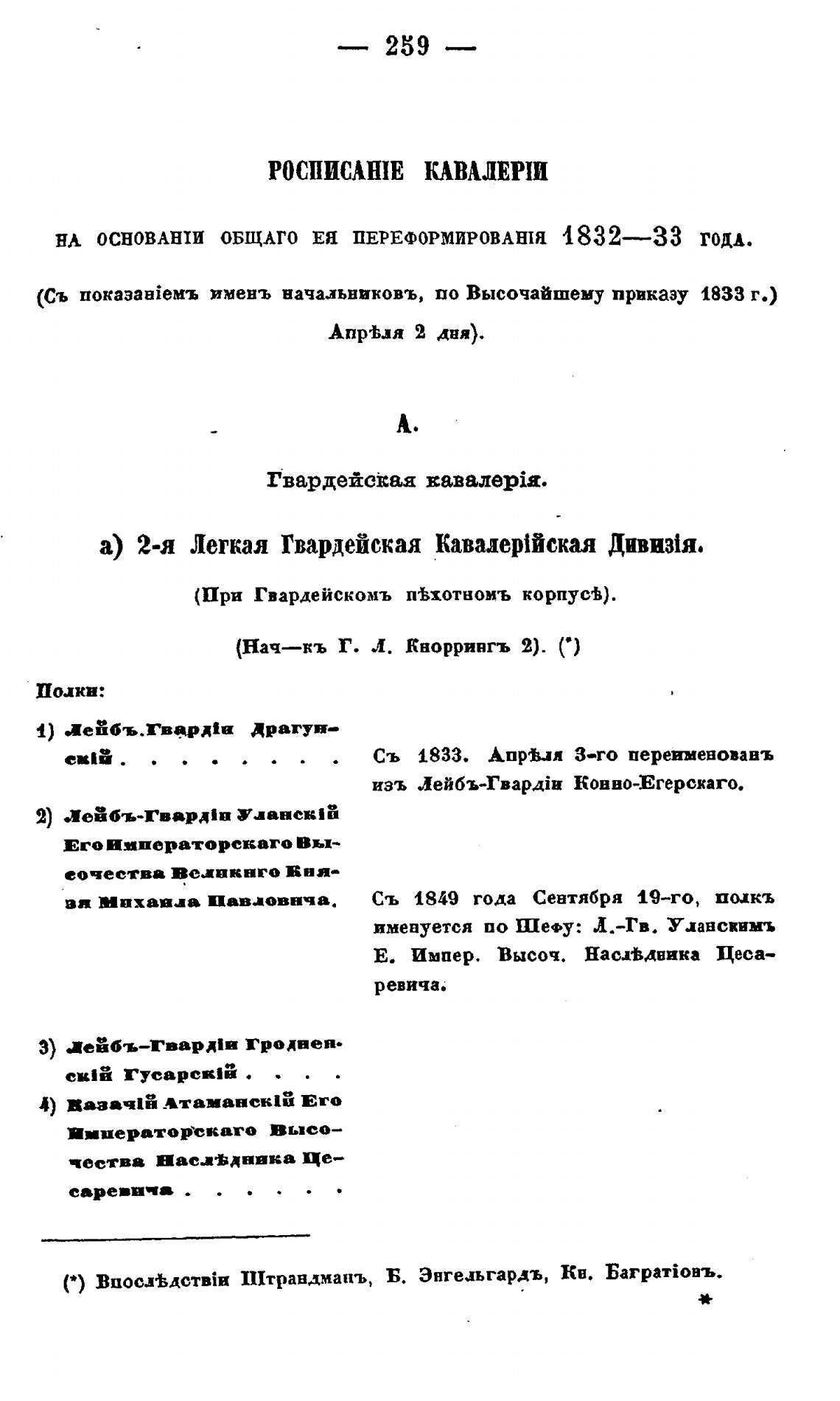 (Съ n0kaaaBieMb имень начальниковъ, по Высочайшему приказу 1833 г.)