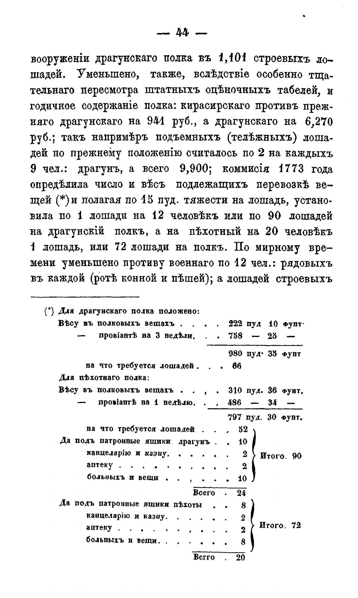 щей (*)и полагая по 45 пуд. тяжести на лошадь, устано-