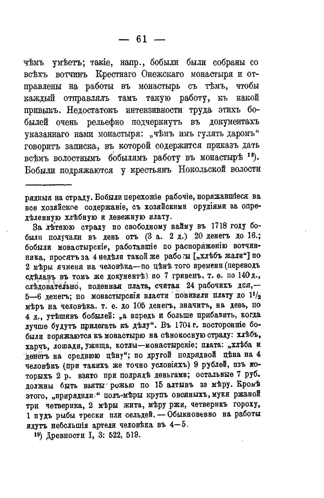 вс±мъ волостнымъ бобылямъ работу въ монастыр± 19).