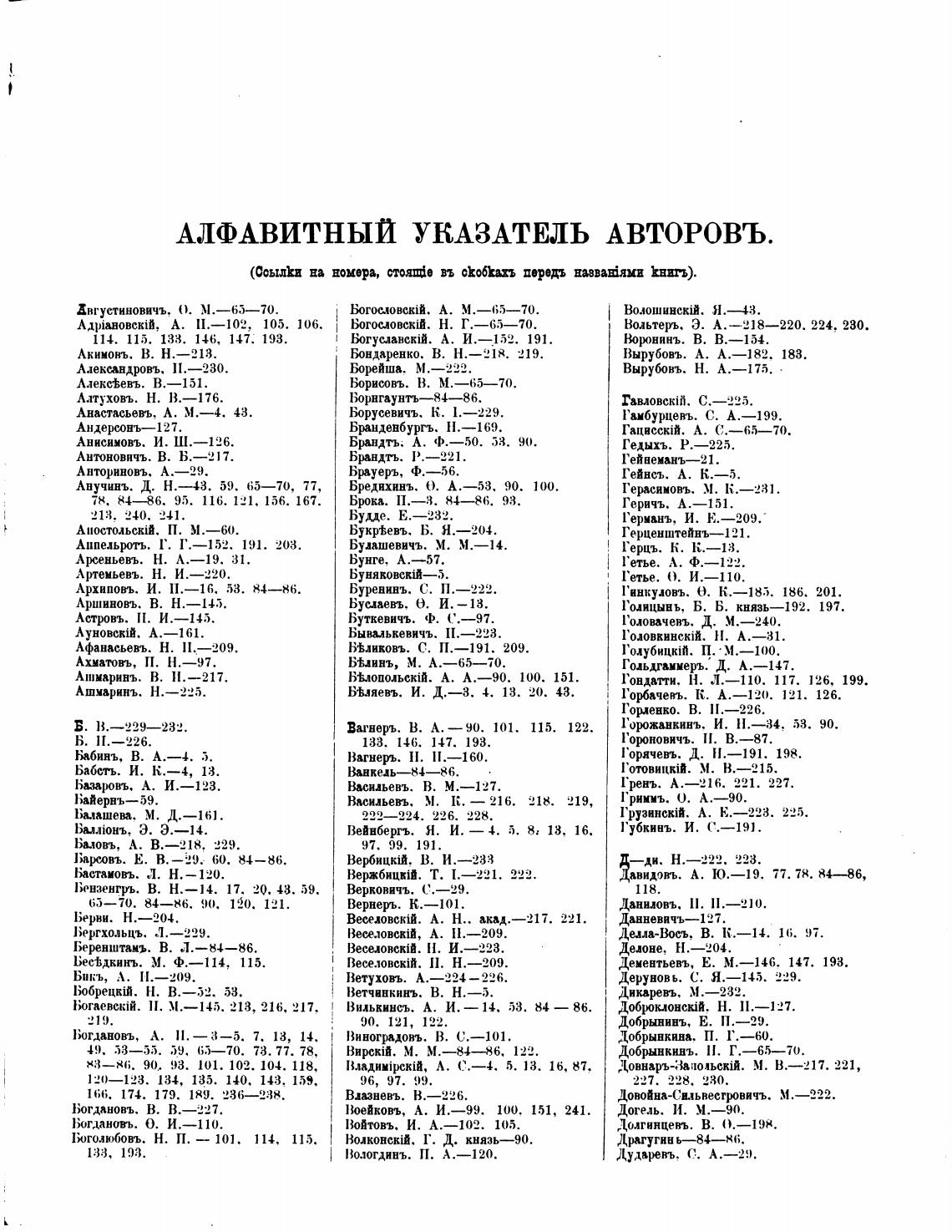 АЛФАВИТНЫЙ УКАЗАТЕЛЬ АВТОРОВЪ.