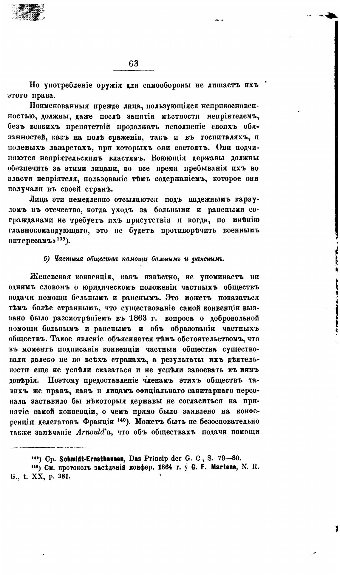 1”) См. протокол вовфер. 1864 г. у б. F. Martens, Х. П.