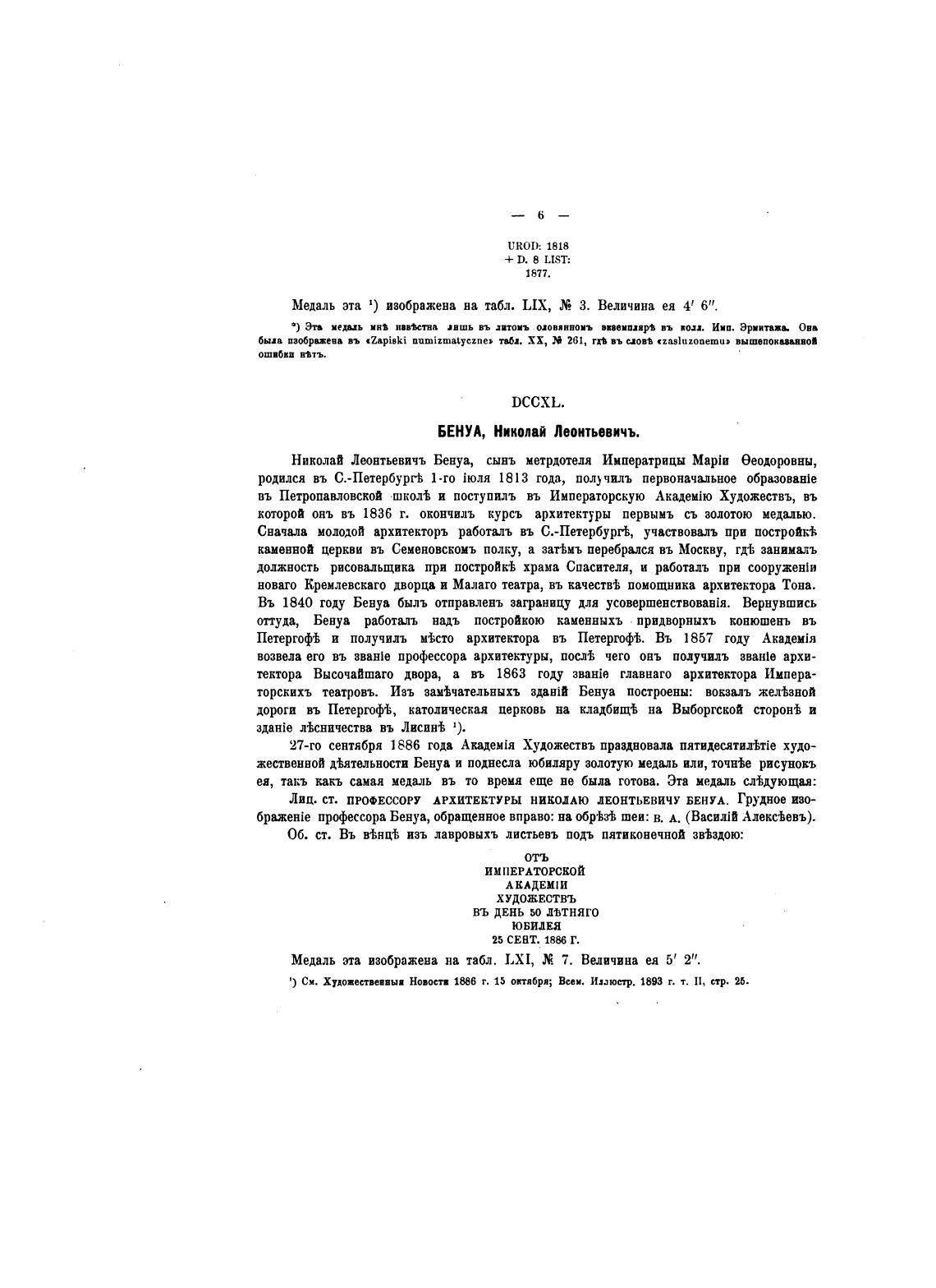 Медаль эта 1) изображена на табл. LIX, 3. Величина ея 4' 6“.
