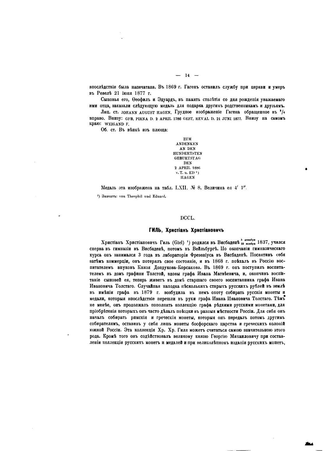 Лиц. ст. JOHANN AUGUST HAGF„N. Грудное Гагена въ