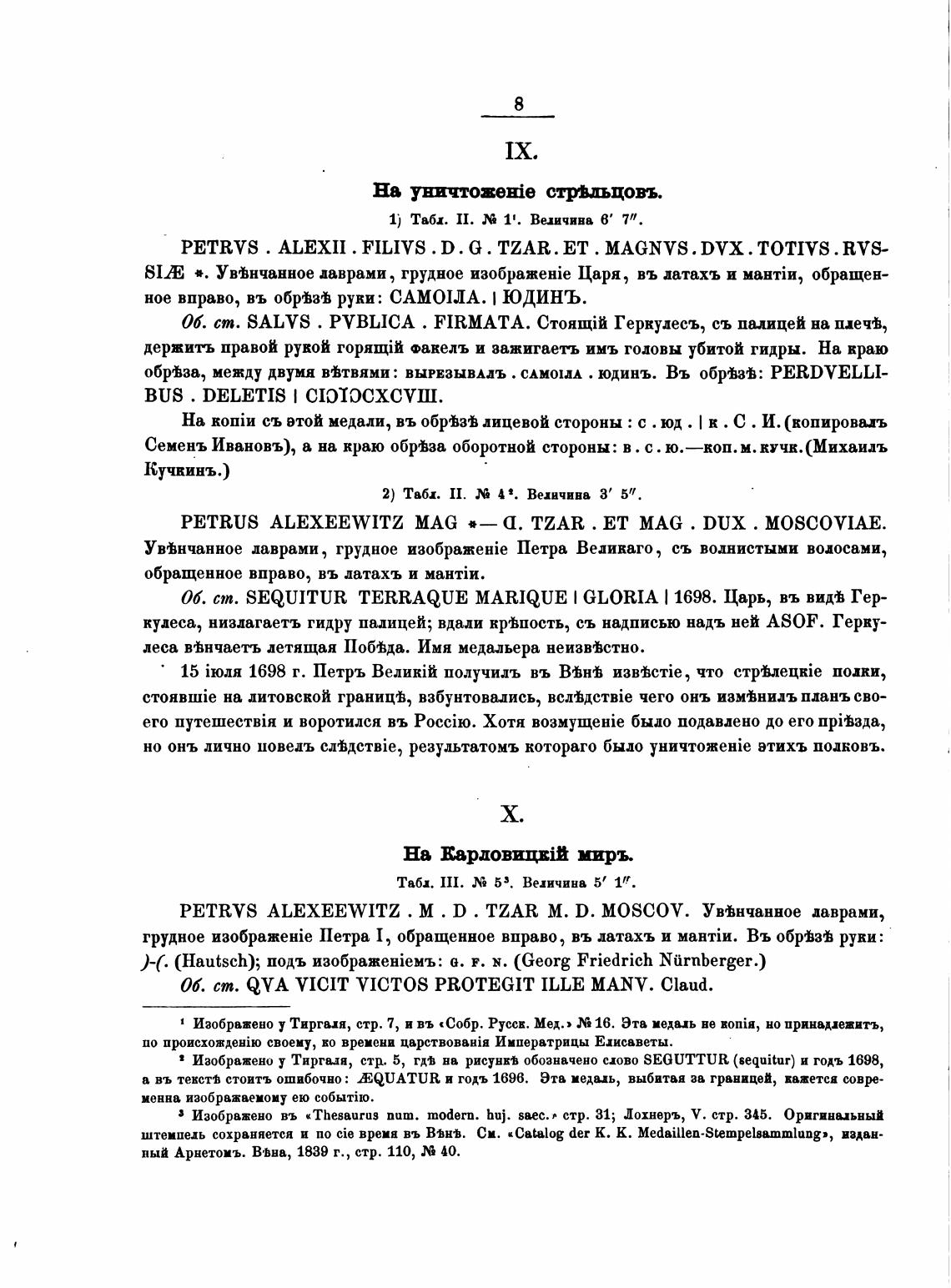 а въ текстћ стоить ошибочно: RQUATUR и годъ 1696. Эта иедць, выбитая ав границей, кажется совр-