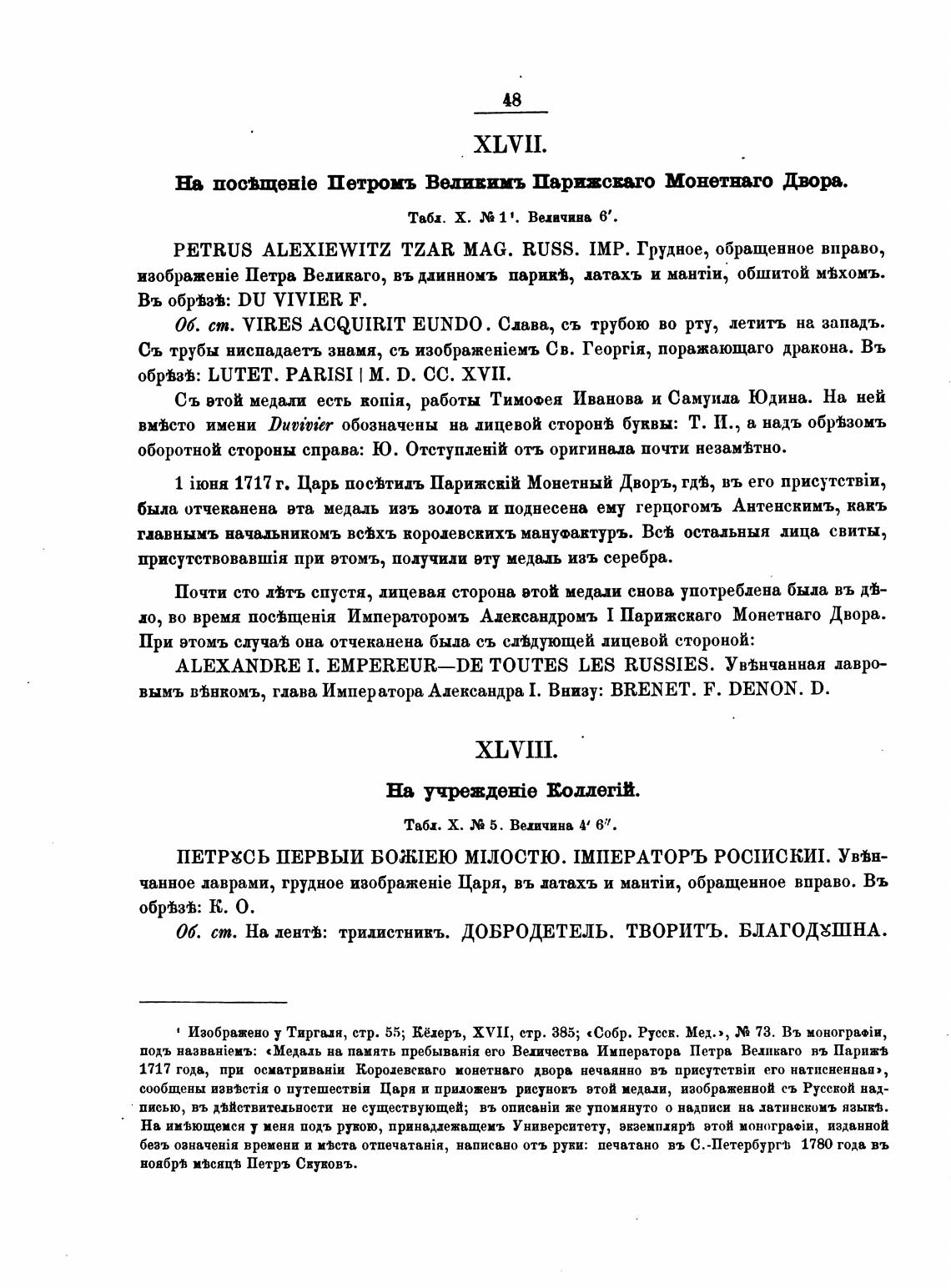 • Изображено у Тирга.ля, стр. 55; Кёлеръ, XVII, стр. 385; «Собр. Русск. Мед.), 73. Въ