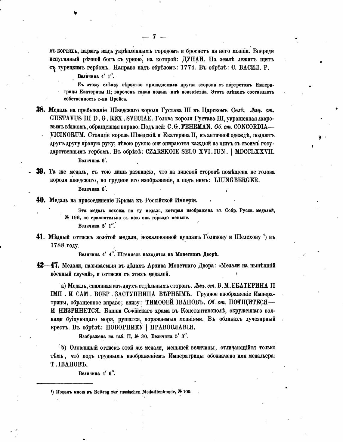 42—47. Медали, называемыя въ фахъ Архива Монетнаго Двора: «Медали на нынћшбй