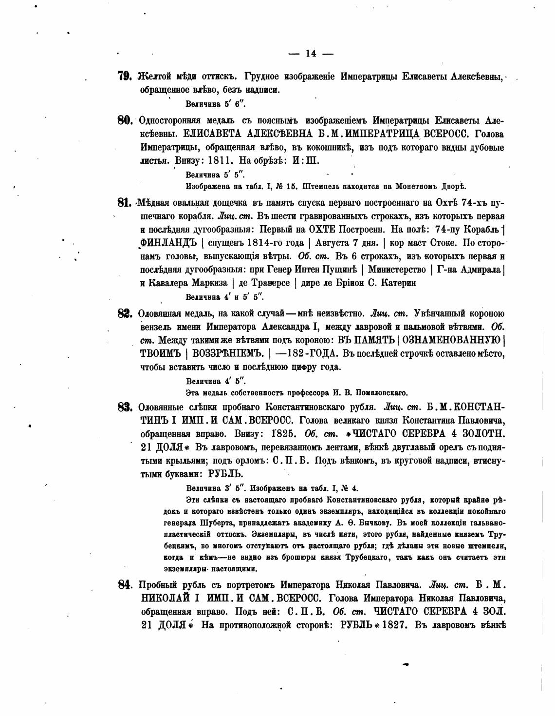 81. •М•Ьдная овальная дощечка въ память спуска перваго построеннаго на ОхтЬ 74-хъ пу-