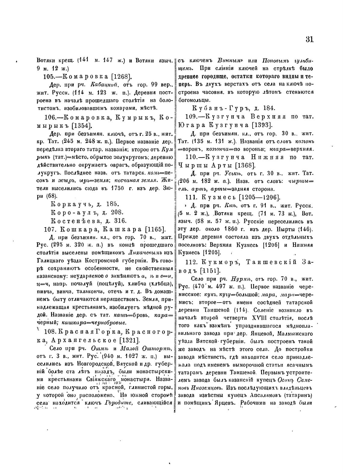 Д. при pq. Уськаь, отъ г. 30 в.. жит. Тат.