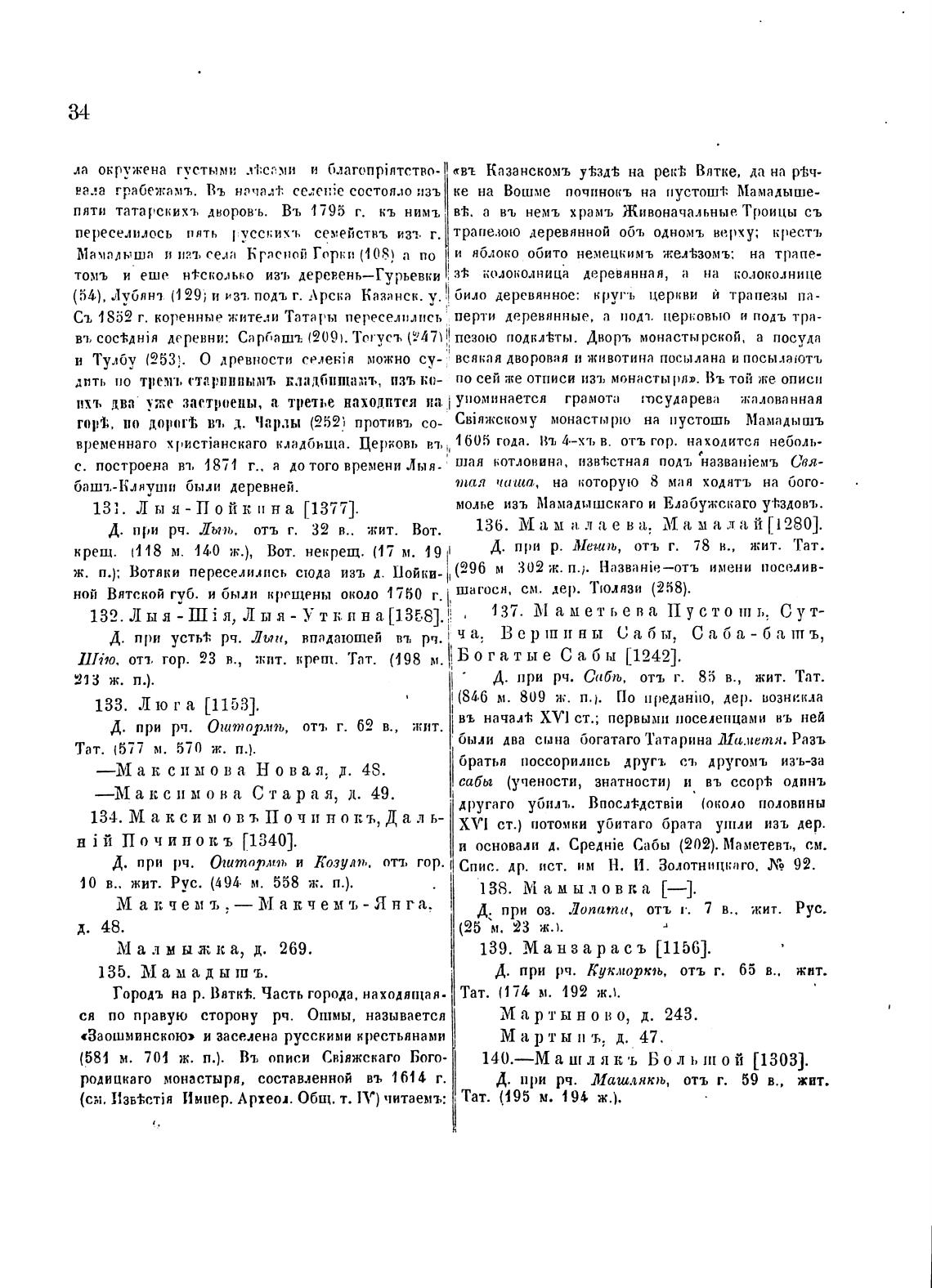 ной Вятской губ. и были крещены около 1750 г. шасосн, см. дер. Тюлнзи (258).