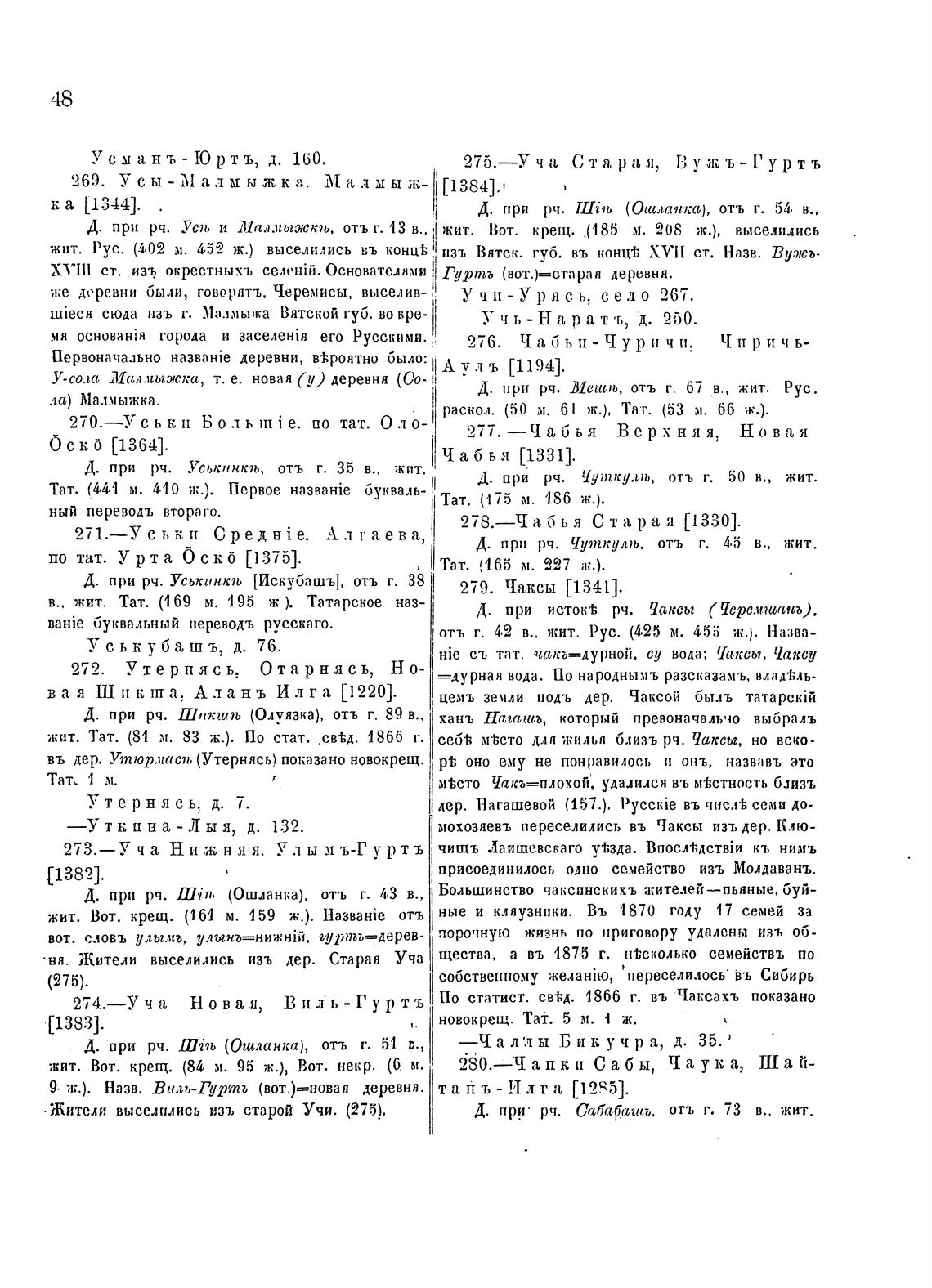 Д. при рч. усп, и Малмьежкзь. отъ г. 43 в., жит. Вот. крещ. .(185 м. 20S ж.), выселились