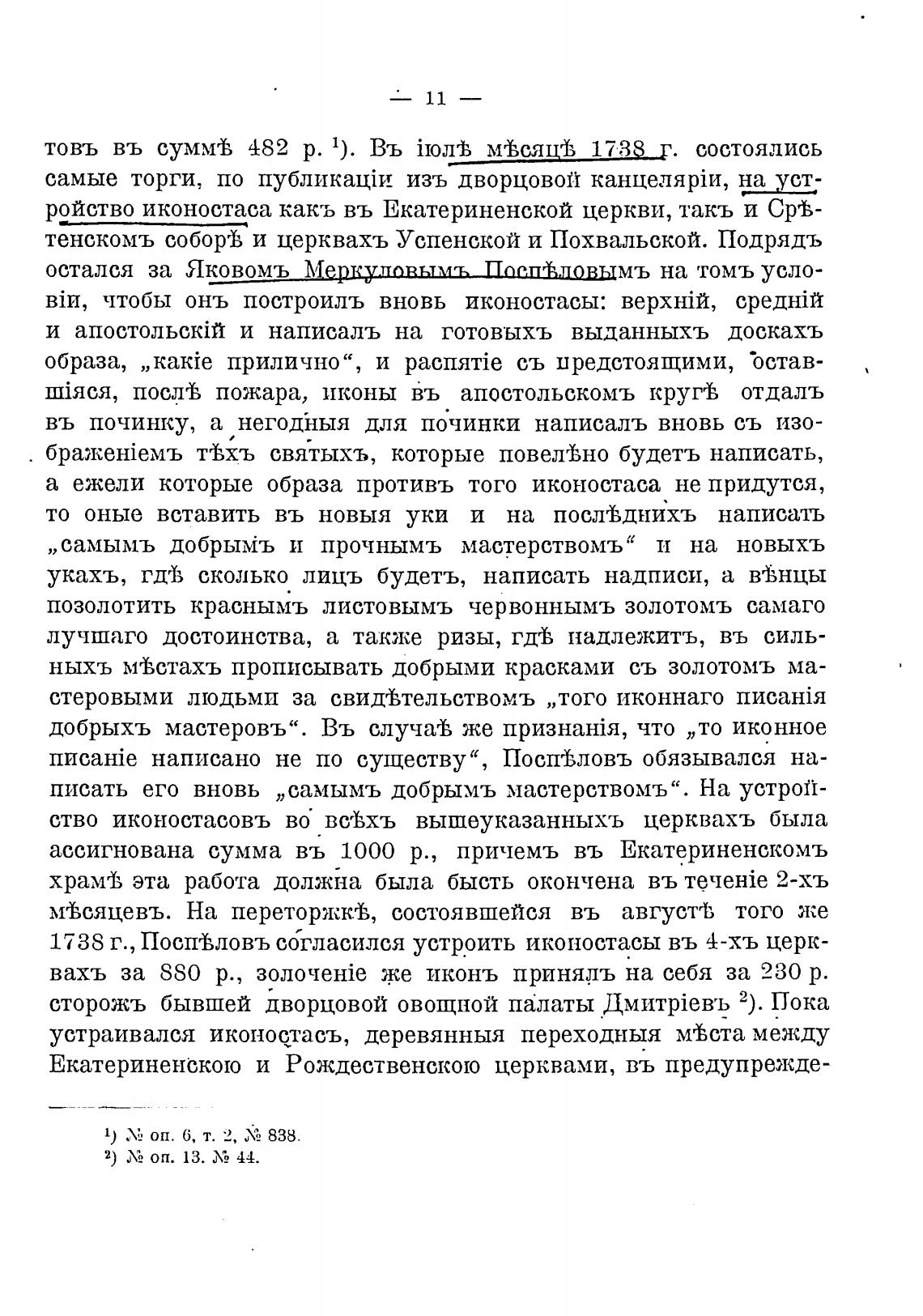 1738 г., ПоспТловъ согласился устроить иконостасы въ 4-хъ церк-