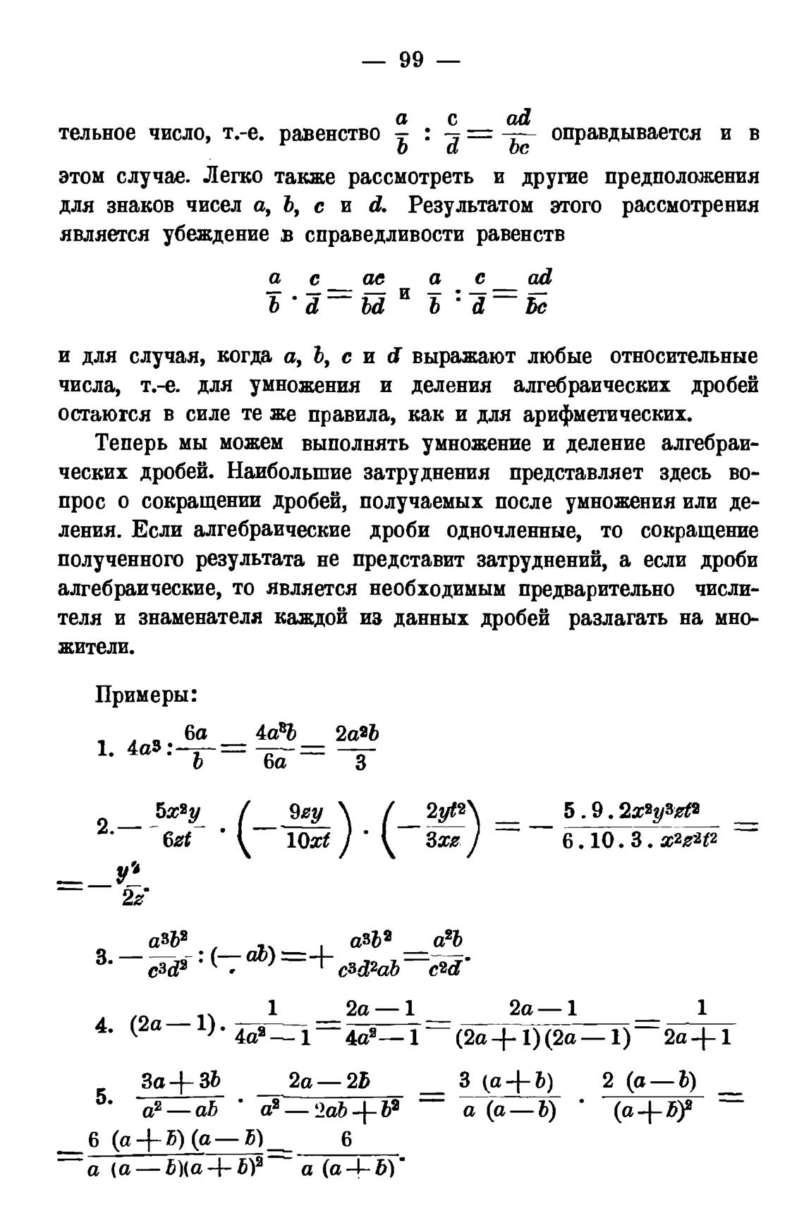 числа, т.-е. для умножения и деления алгебраических дробей