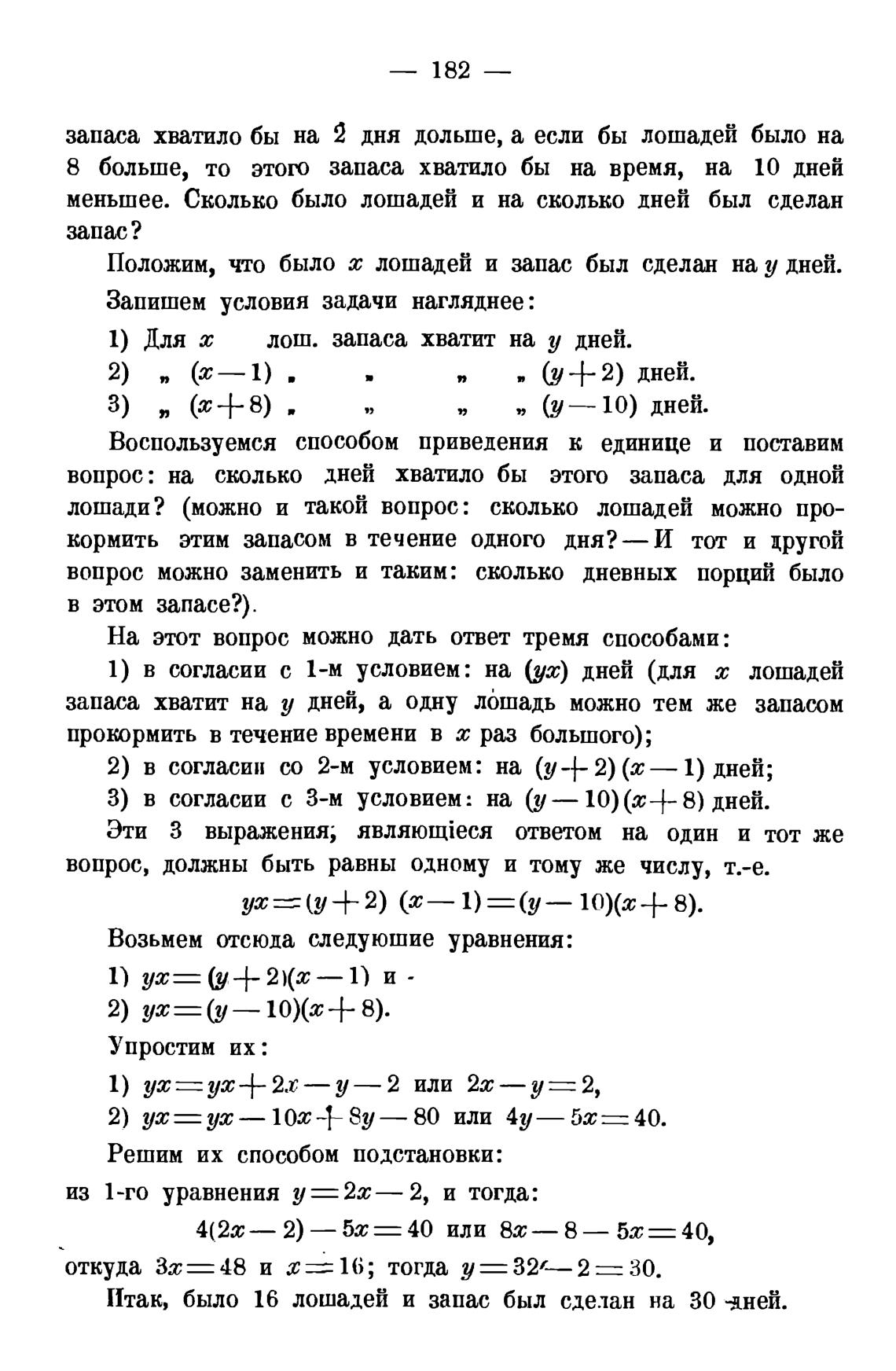 Положим, что было т лошадей и запас был сделан на у дней.