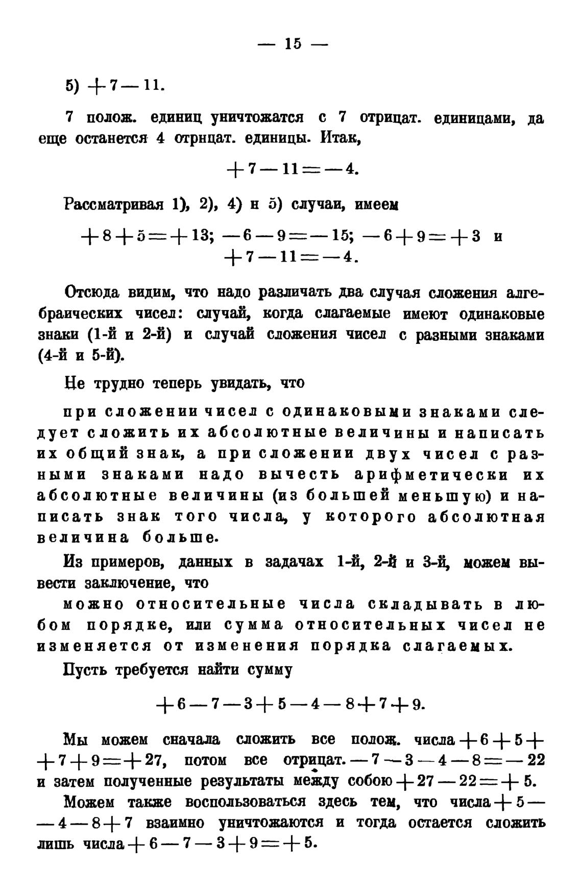 Отсюда видим, что надо различать два случая сложения алгебраических чисел: случай, когда слагаемые имеют одинаковые