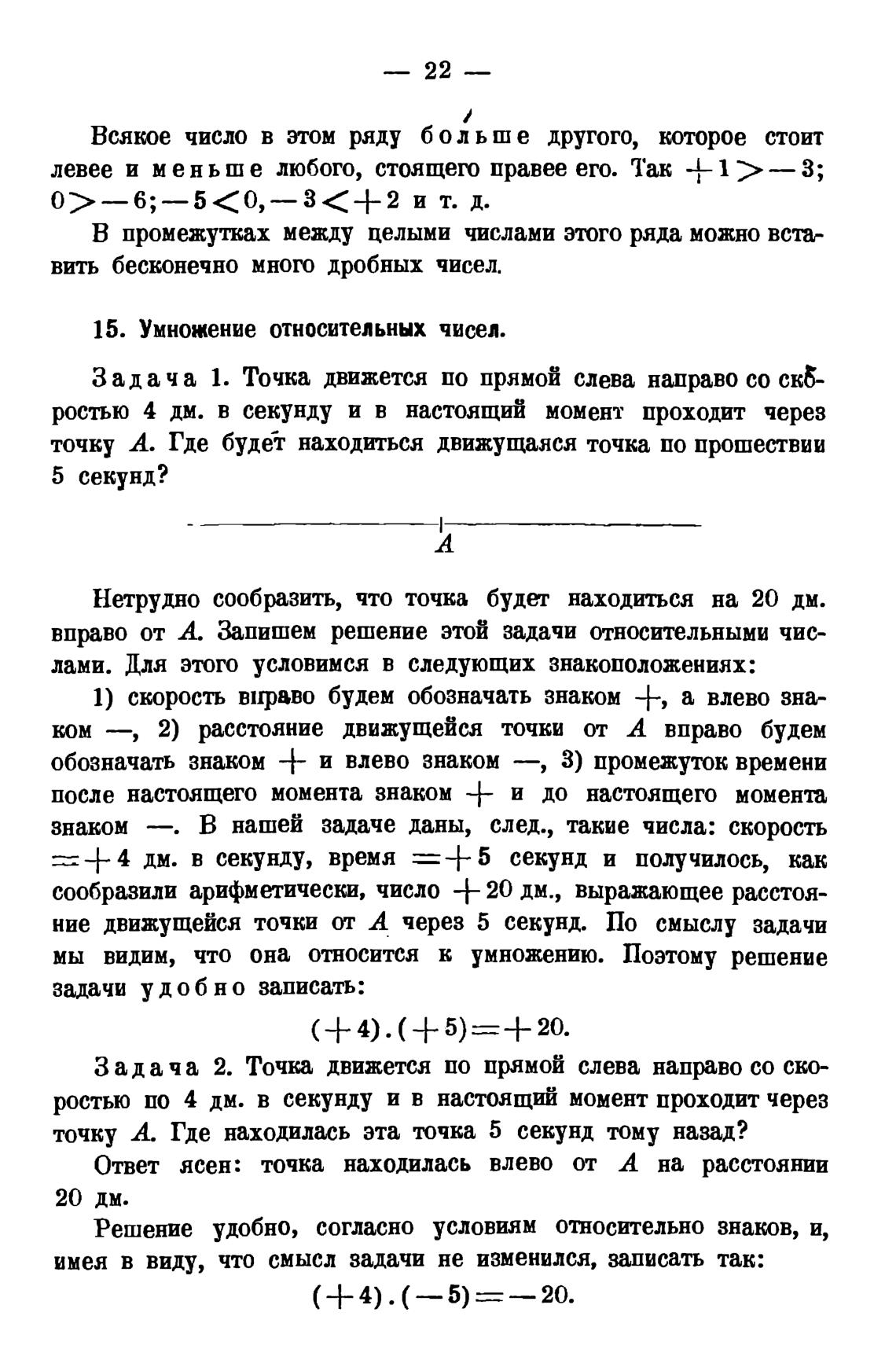 сообразили арифметически, число -f- 20 дм., выражающее расстояние движущейся точки от А через 5 секунд. По смыслу задачи