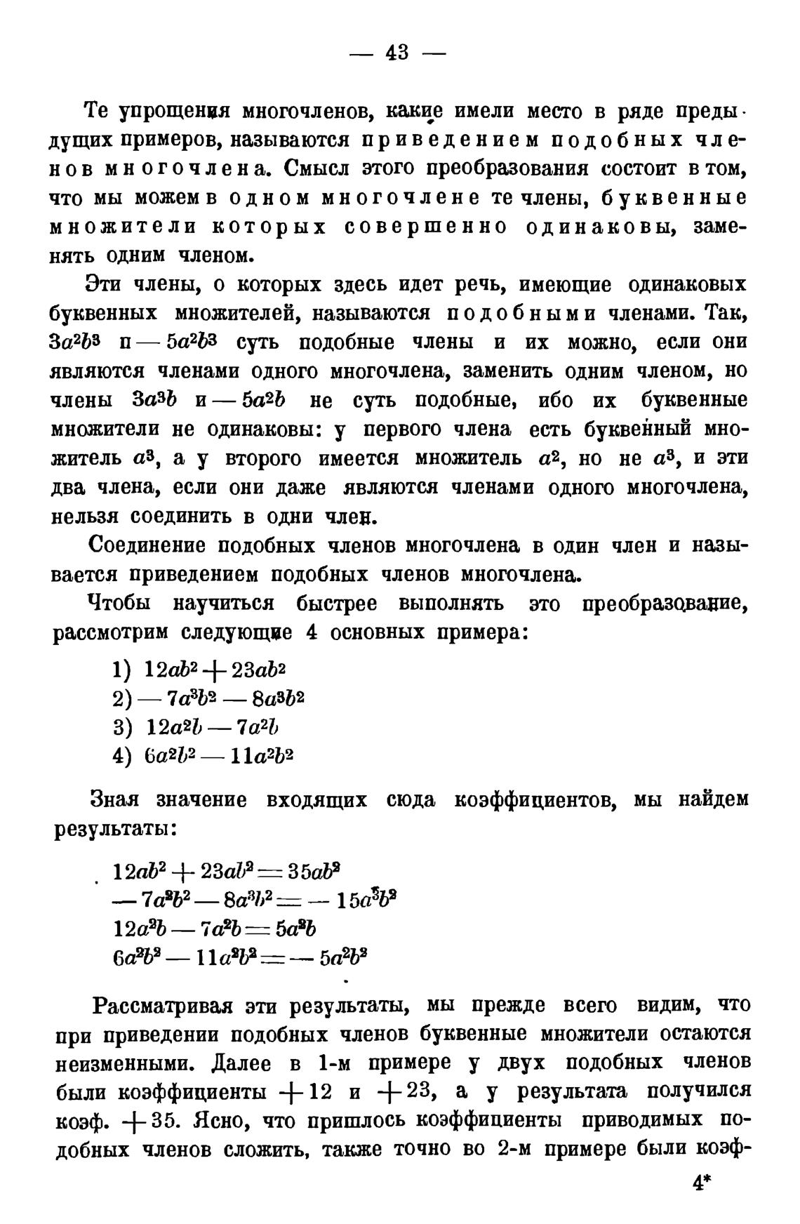 Те упрощения многочленов, какие имели место в ряде предыдущих примеров, называются п р и в е д е н и е м п о д о б н ы х ч л е н о в м н о г о ч л е н а . Смысл этого преобразования состоит в том,