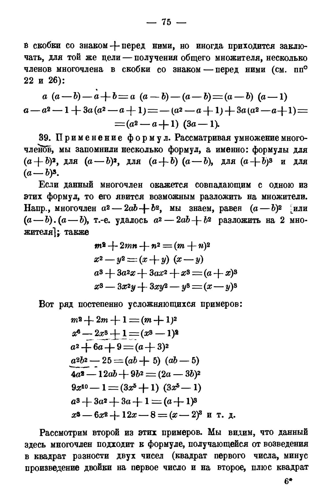 39. П р и м е н е н и е ф о р м у л . Рассматривая умножение многочленов, мы запомнили несколько формул, а именно: формулы для