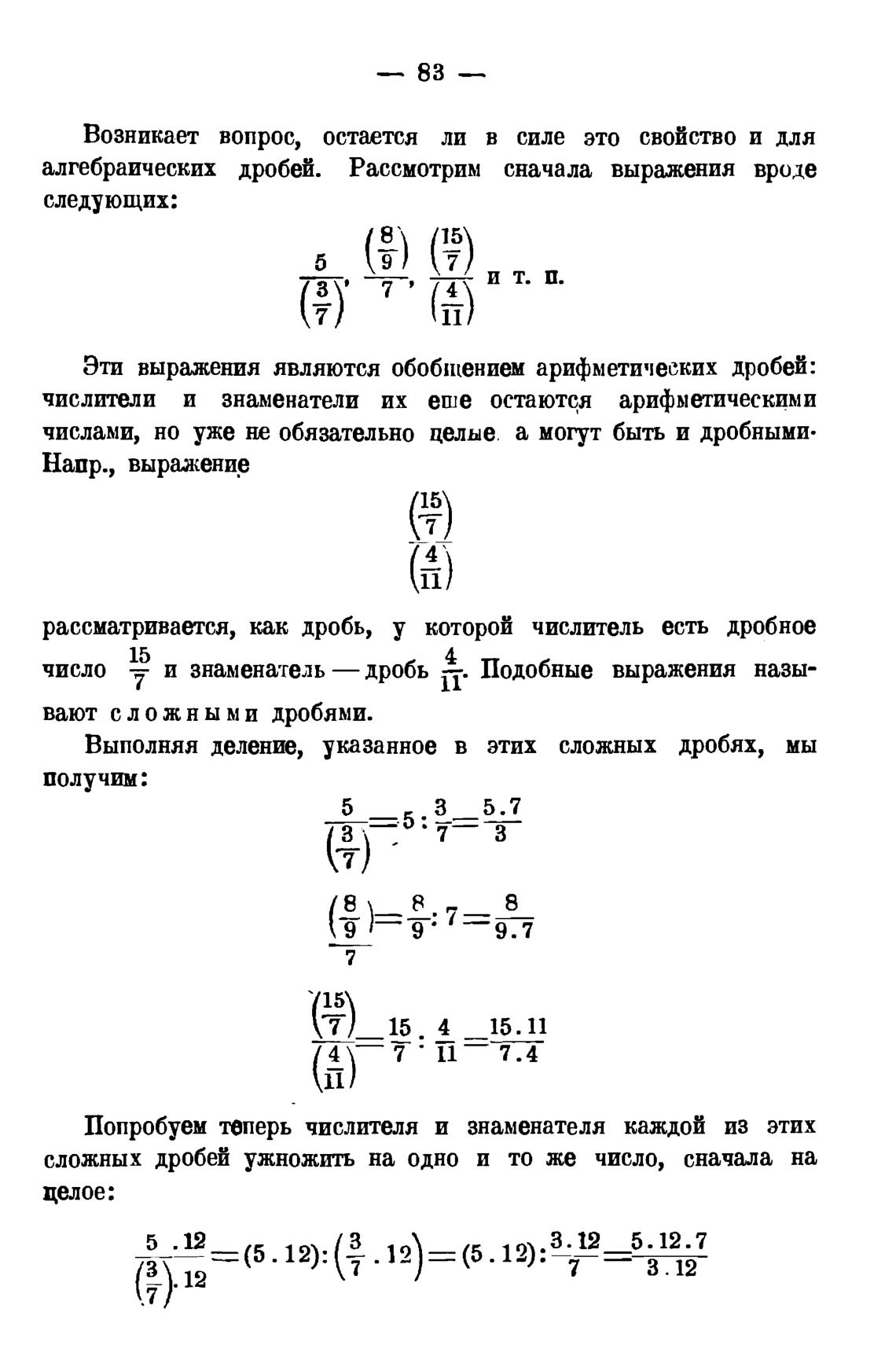 алгебраических дробей. Рассмотрим сначала выражения вроде