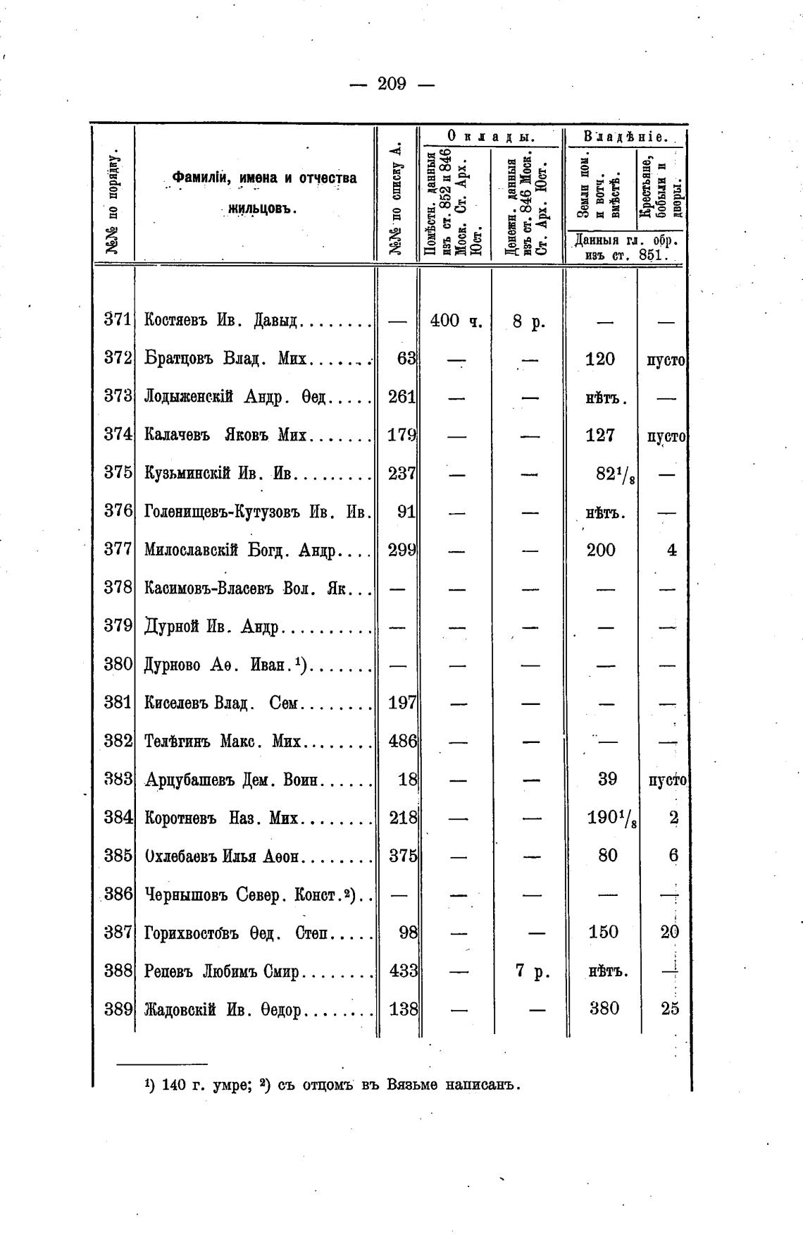1) 140 г. умре; 2) съ отцомъ въ Вязьме написань