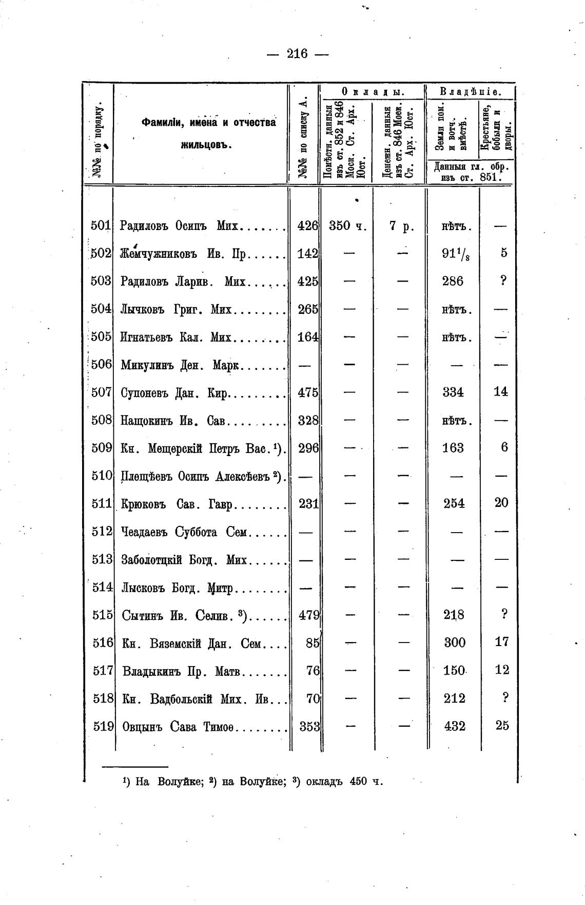 1) На Водуйке; 2) на Волупе; 3) окладъ