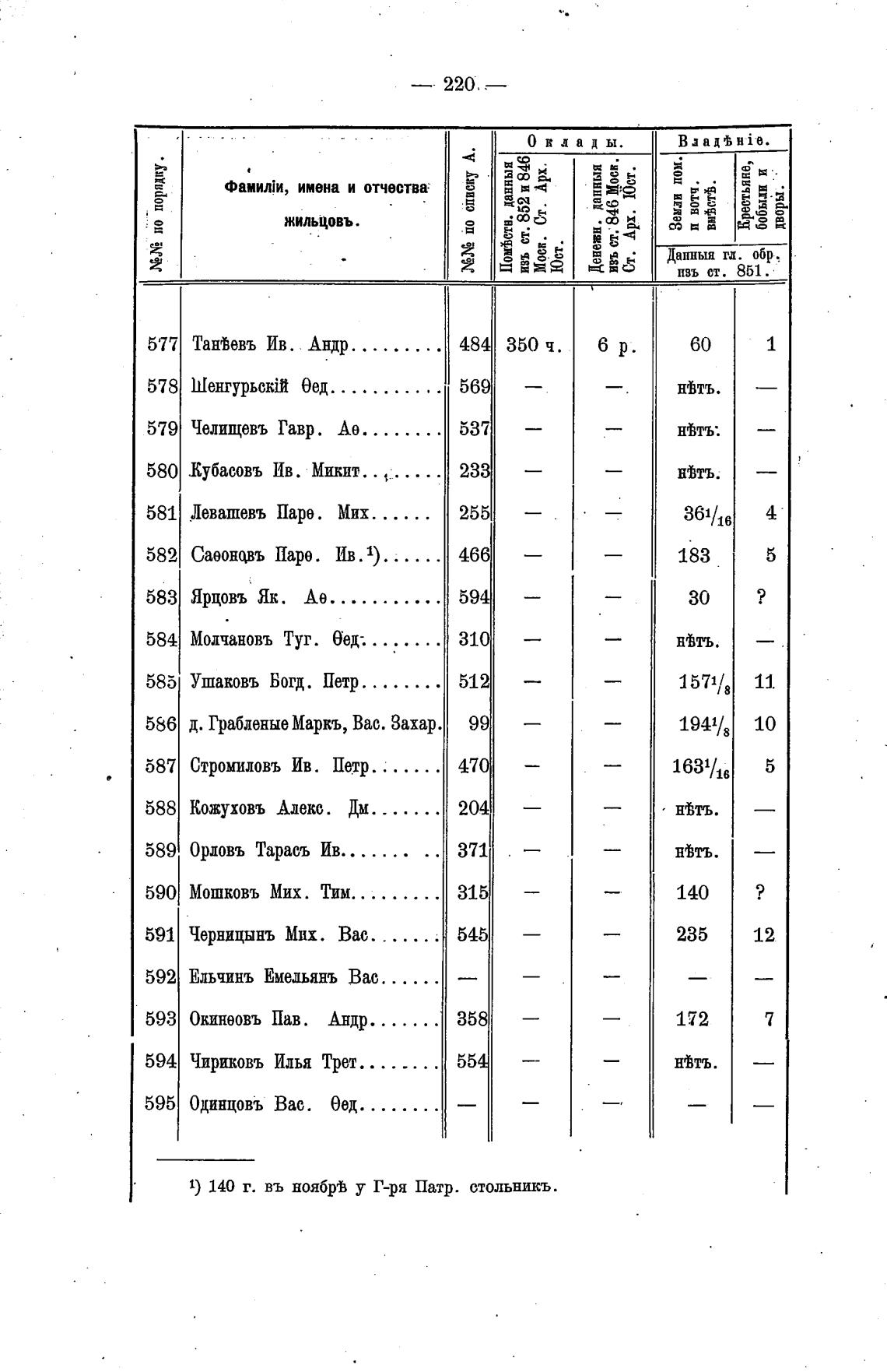 1) 140 г. въ ноябрв у Г-ря Патр. стольникъ.