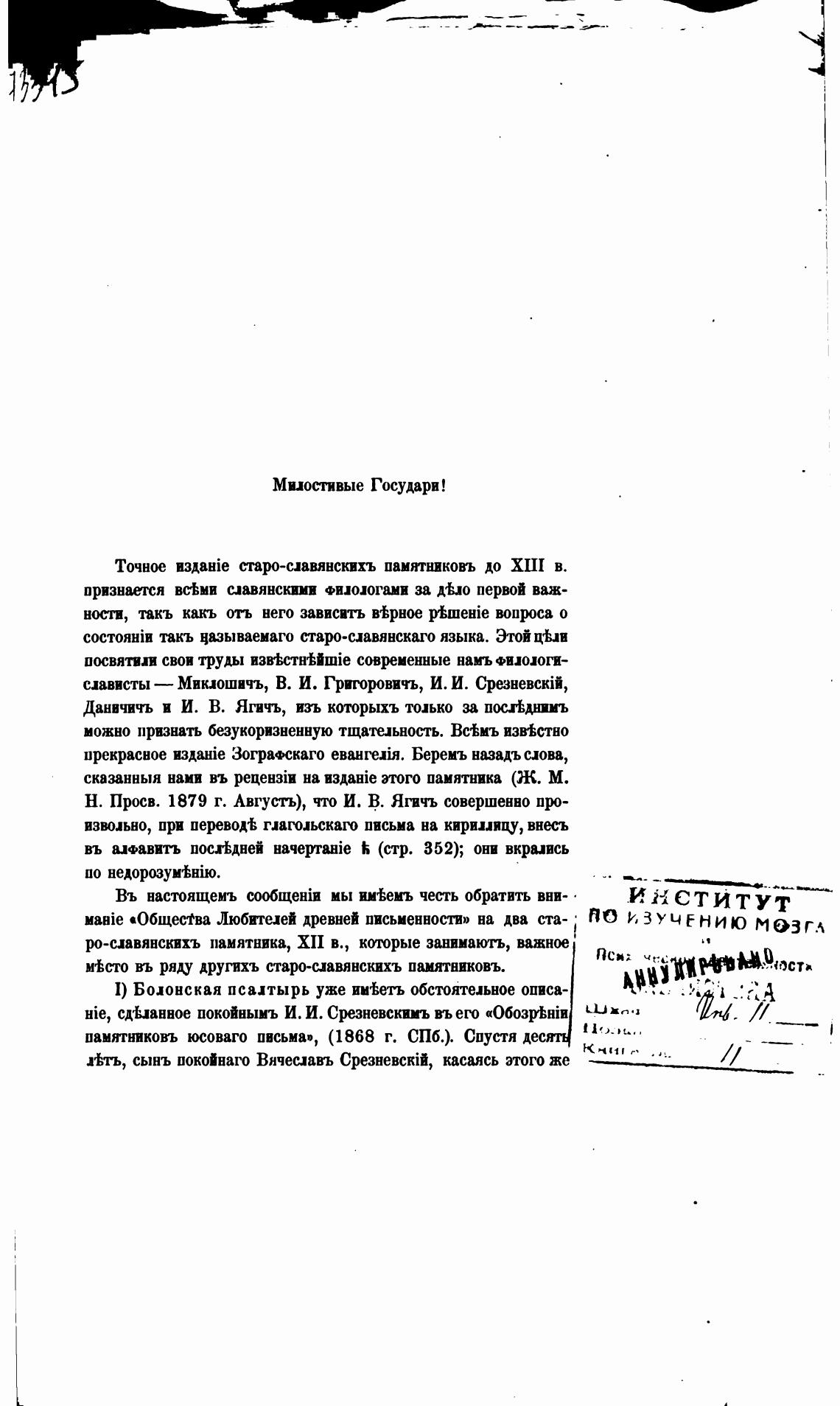 Hie, сдьанное покойнымъ И. И. Срезневскимъ въ его «Обозр•ЬЕйи