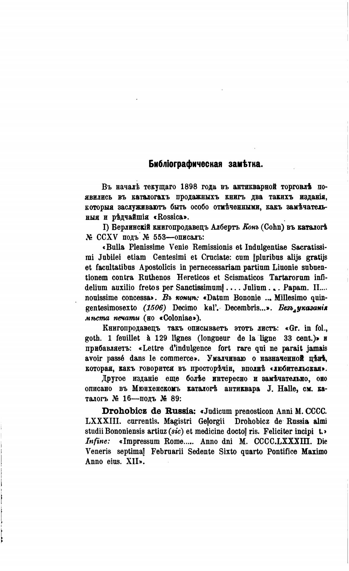 1) ВерлинсМй книгопродавецъ Алберть Кона (Cohn) въ катион