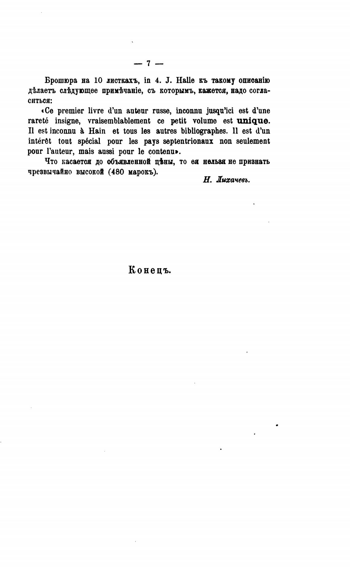 Брошюра на 10 дисткахъ, in 4. Ј. Halle въ такому опиоатю