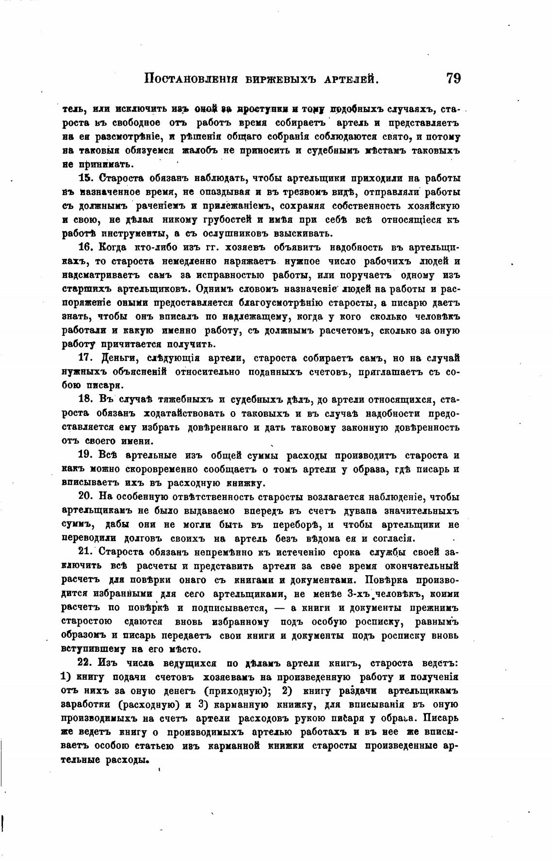 15. Староста обязанъ наблюдать, чтобы артельщики приходили на работы