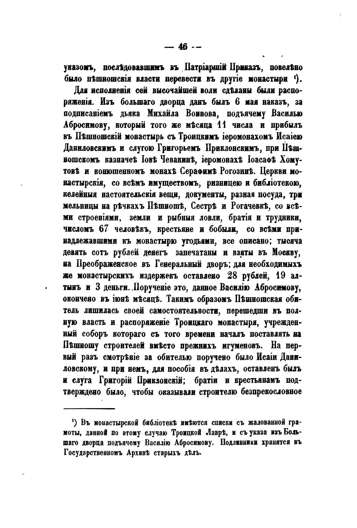 моты, данной по этому случаю Троицкой Лавр, и съуказа взъ Бољ-