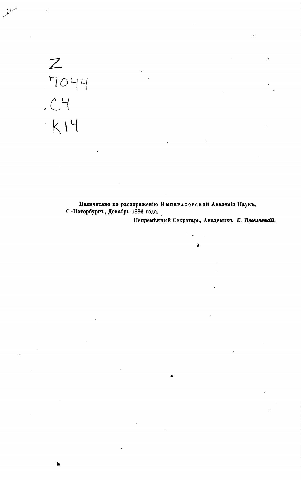 Напечатано по ИМПЕРАТОРСКОЙ Наукъ.