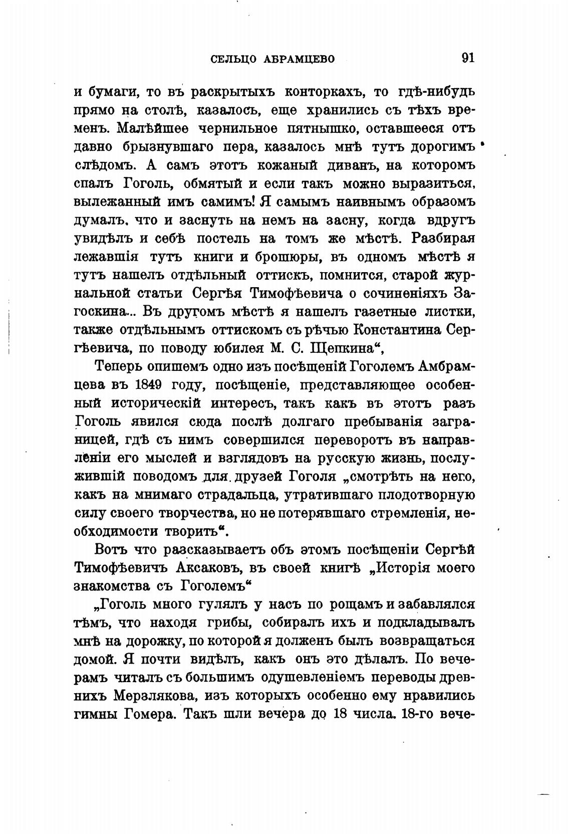 „Гоголь много гулялъ у насъ по рощамъ и забавлялся
