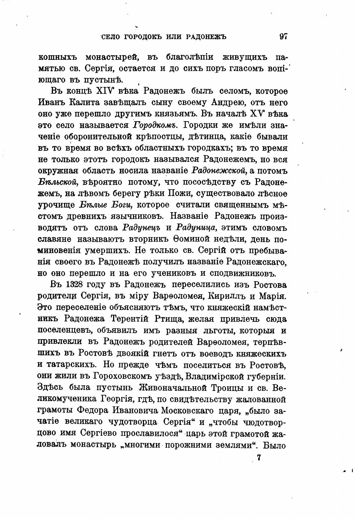 Въ концев XIV вћна Радонежъ быль селомъ, которое