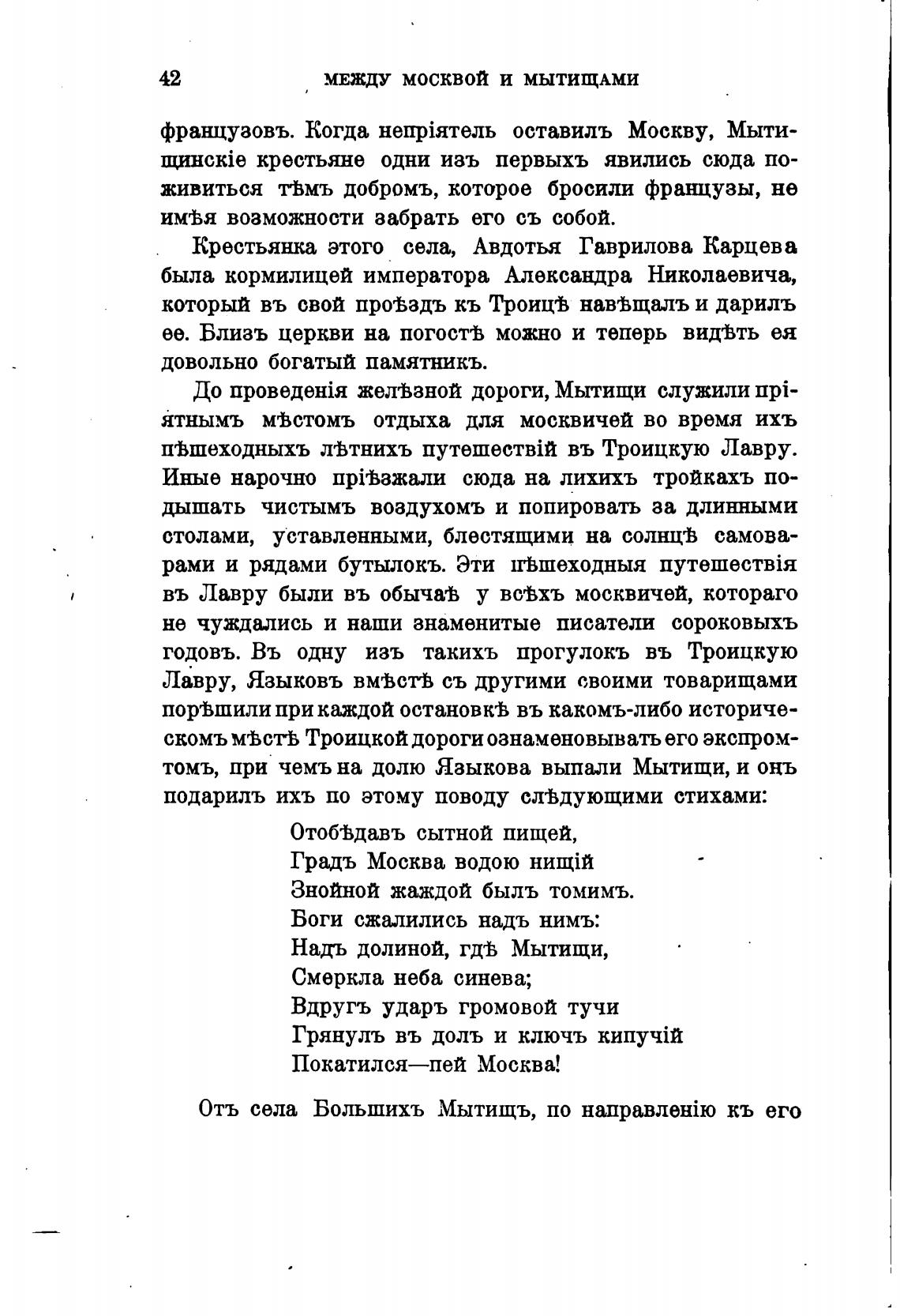 томъ, при чемъ на долю Языкова выпали Мытищи, и онъ