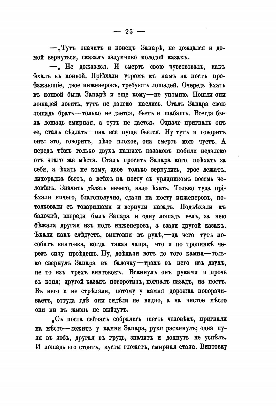 И лошадь его стоить, кусты гложетъ, смирная стала. Винтовку