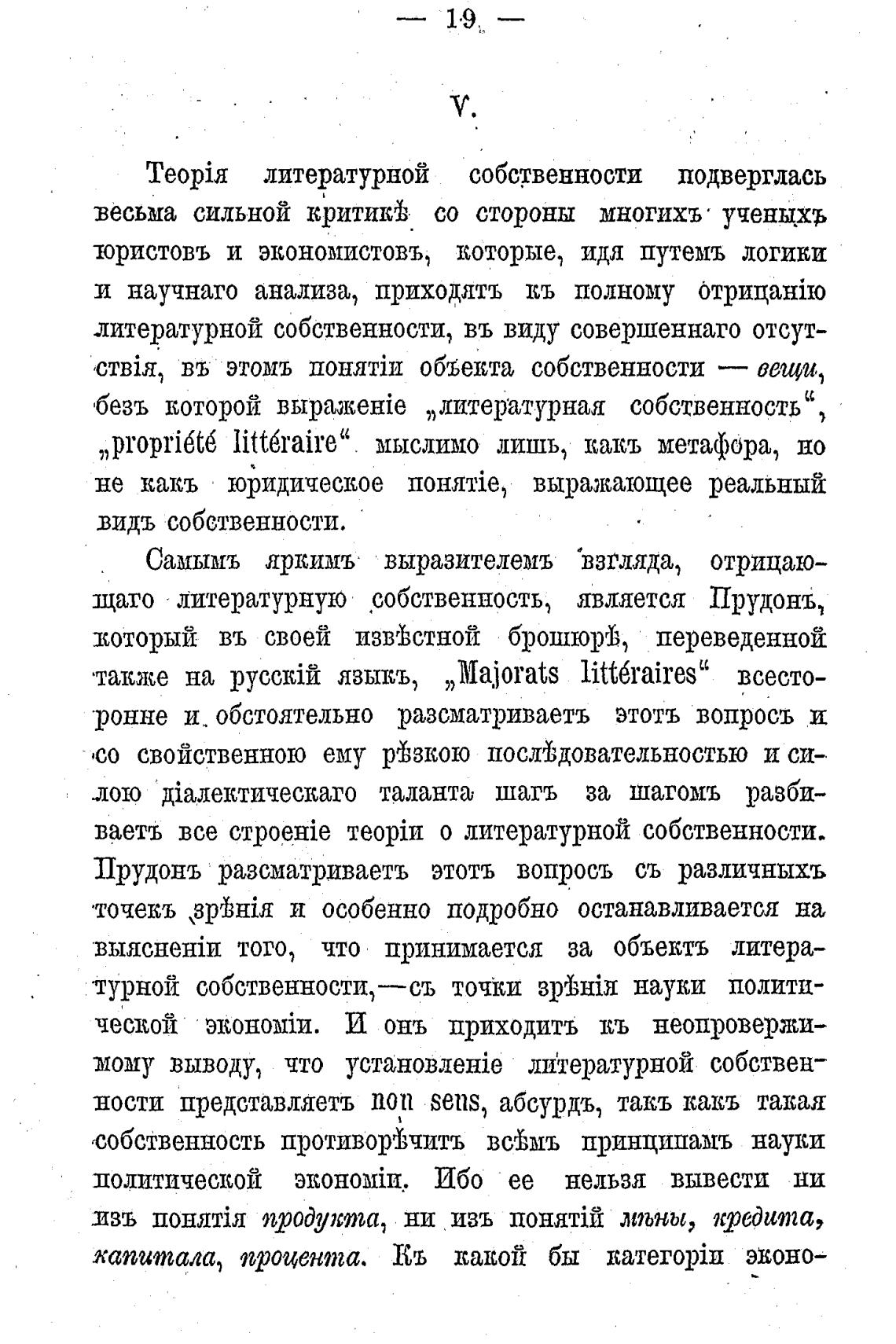 щаго литературную собственность, является Прудонъ,